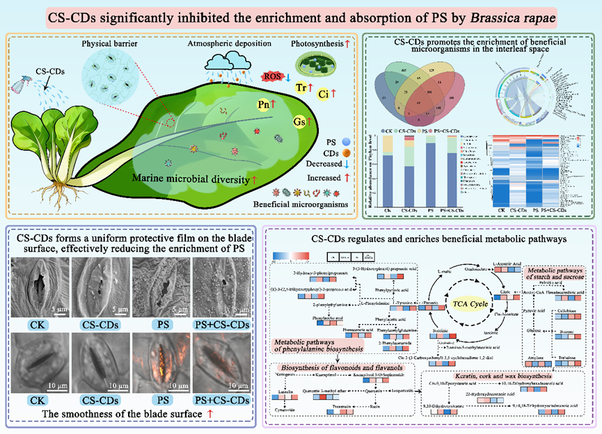 本研究从叶面界面到体内调控系统阐明了CS-CDs对纳米塑料胁迫的缓解机制,为农业环境安全提供了新思路。未来,团队将以园林与园艺植物为对象,开展跨物种应用的范式研究,推动该技术在复杂生态环境中的拓展与应用。