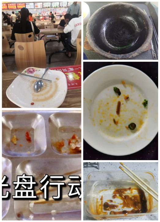 从现在做起,从点滴做起,从自身做起,让“杜绝餐饮浪费”成为自觉,成为良好习惯。学院组织同学们发送自己的用餐完毕后光盘图片,以实际行动积极践行于一餐一饭中,做抵制浪费的践行者,于一点一滴中,做厉行节约的弘扬者。