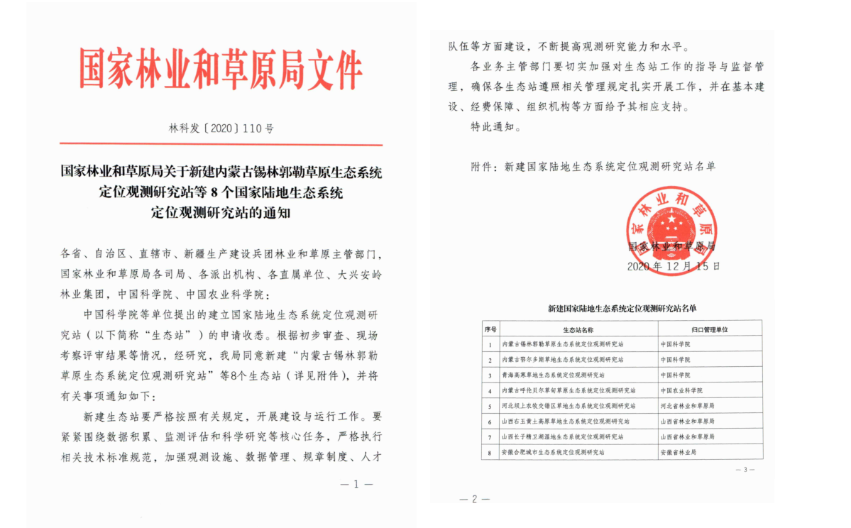 日前,国家林业和草原局〔2020〕110号文件复函同意建立包括中国科学院、中国农业科学研究院等5家单位申报的8个国家陆地生态系统定位观测研究站,其中公司获批唯一一个城市站—“合肥城市生态系统定位观测研究站”。