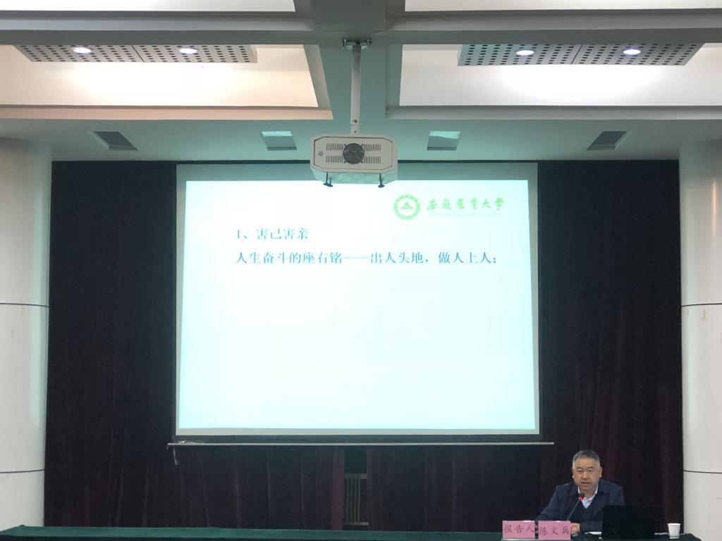 陈文兵指出,推进全面从严治党,落实管党治党责任,必须加强党风廉政建设,要科学研判反腐之势、充分认清贪腐之害、深刻剖析贪腐之源、综合运用反腐之策、零容忍筑牢师德防线。他紧扣当前全面从严治党和党风廉政建设新形势,运用发生在高校以及身边的违纪违法典型案例,从心理学角度以及一体推进“不敢腐、不能腐、不想腐”要求,深刻剖析了“见钱眼开”的贪婪心理、“蒙混过关”的侥幸心理、“难以自控”的矛盾心理、“深感吃亏”的补偿心理、“贪图享乐”的虚荣心理、“按劳取酬”的交易心理、“有恃无恐”的攀比心理等思想道德滑坡的根源,告诫广大教职工特别是党员同志要带头加强自律、磨练自我、涵养超我,学会人生核算,自觉接受他律,永葆清廉本色。