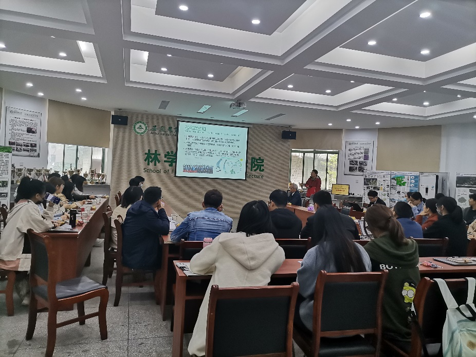 王滨教授做了活动特邀报告,向在场教师和同学们分享了自己在昆虫病原真菌领域的研究成果和科研心路历程。特邀报告后,由黄兴召副教授、田鹏副教授、严涵薇副教授、欧强新讲师分别做了利用荟萃分析手段揭示土地利用方式改变对土壤源汇关系转化的影响、服务碳中和目标的森林碳增汇战略思考、典型模式植物杨树功能基因的挖掘、基于机器学习的黄山松生长对气候变化的响应机理的主题报告。现场的老师和同学积极参与交流,展开了热烈的讨论,起到了加深专业理解,促进学科交流的积极作用。