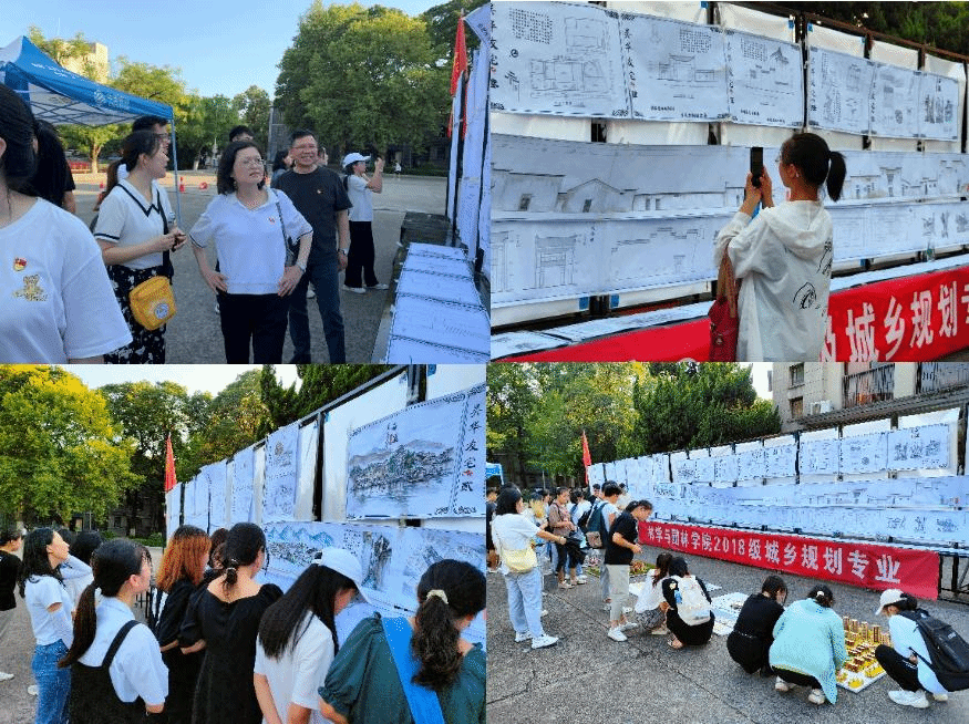 本网讯 为庆祝中国共产党成立100周年,持续做深做实党史学习教育,在喜迎中华人民共和国成立72周年来临之际,9月26日,yl6809永利检测中心城乡规划系党支部携手2018级城乡规划专业师生在学校大礼堂门前广场举办2021年西递•古建筑测绘实习成果展,面向全体在校师生,参与本次活动的教师党员、员工党员及团员青年达百余人次,学院教学副经理张龙娃、城乡规划系教工党支部书记管欣、城乡规划系主任张云彬、副主任丁文清等莅临现场进行相关指导,2018级城乡规划专业全体师生参与本次展览全部志愿服务工作。