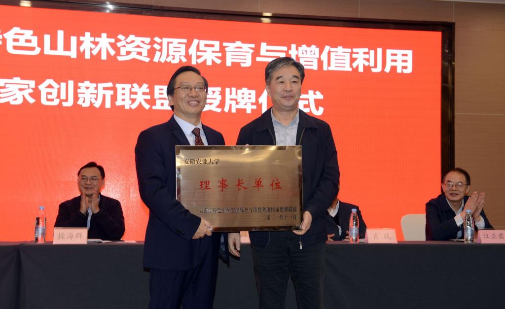 操海群教授首先代表学校对线上线下莅临参会的领导和专家表示欢迎和感谢,对国家林业与草原局和安徽省林业局将公司设立为“大别山特色山林资源保育与增值利用国家创新联盟” 理事长单位表示感谢,对联盟今后的工作做出了要求和部署。安徽省林学会理事长邱辉代表联盟推荐单位感谢国家林业与草原局对于安徽林业工作的支持,对联盟的启动表示祝贺,对联盟推动我省林业基础研究和产业扶持的工作做了具体的要求。国家林业和草原局科技司厉建祝巡视员代表联盟主管单位对联盟的正式启动表示祝贺,并要求参加联盟的单位要切实履行好主体责任,按照国家林草局创新联盟管理有关规定和要求组织开展活动,推动大别山地区山林资源产学研用的深度融合,进一步造福山区人民,为革命老区的高质量发展做出新的贡献。随后举行授牌仪式中,主席台就坐的各位领导将联盟理事长单位、副理事长单位、常务理事单位和理事单位的铭牌分别授予了yl6809永利检测中心、华中农业大学、河南农业大学和皖西学院等联盟发起单位和参加单位。