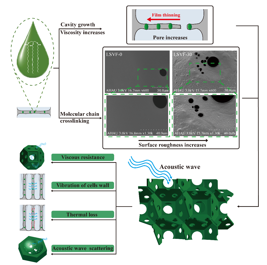 图3. 丝瓜籽油基聚氨酯粘弹性泡沫的吸声机理