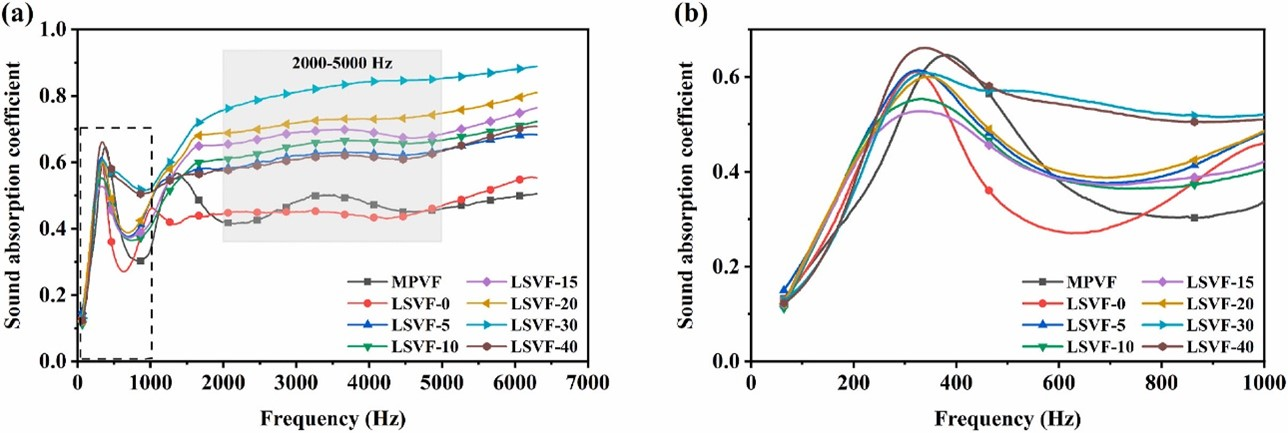 图2. 丝瓜籽油基聚氨酯粘弹性泡沫的吸声系数
