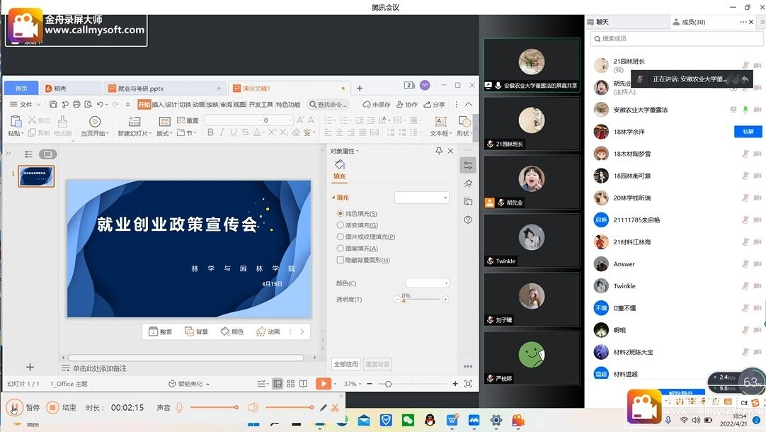 本网讯 为了引导老员工了解就业创业知识,提高就业创业能力,激发当代老员工的就业创业热情,同时进一步落实公司实践育人的教育方针,深化就业创业工作,促进老员工走自主创业之路,实现以创业带动就业,以实践深化理论的培育目标。yl6809永利检测中心于4月24日晚在腾讯会议举办就业创业政策宣传会,由学院就业联络员主持,学院各年级专业同学参加本次会议。