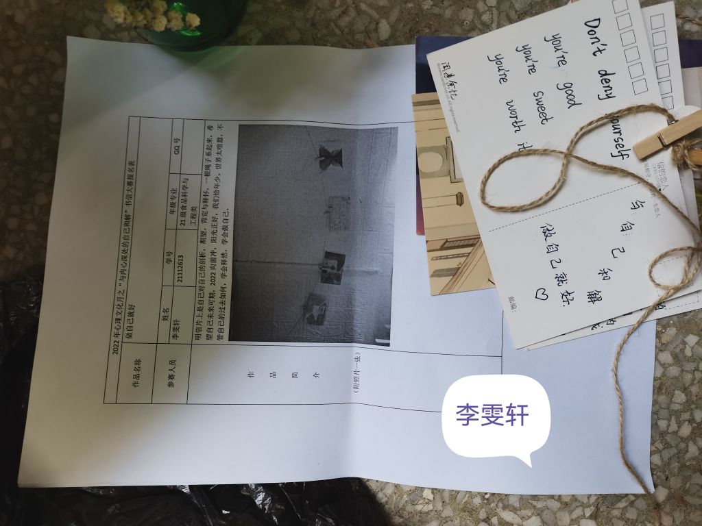 在为期一个月的策划准备及活动过程中,同学们积极参与、踊跃交流,共同分享着自己人生的另一面,这使心理健康问题也得到了大家的重视。同学们通过自备明信片、信纸或者漂流瓶等多种形式,在纸上写上自己想要改正的缺点,把想说的话或者封校期间内心的压力等写出来,作品最终会悬挂至林学楼树上或校园各处。无论是前段时间火遍全网的话题“与素颜和解”,又或是与曾经人生所遇所憾和解,活动结束后,这棵树不仅可以留言,也可以为他人解惑,大家积极表达想法,释放心理压力,这不仅体现了同学们对未来生活的憧憬,更是与过去和解,让青春之花更好地绽放。