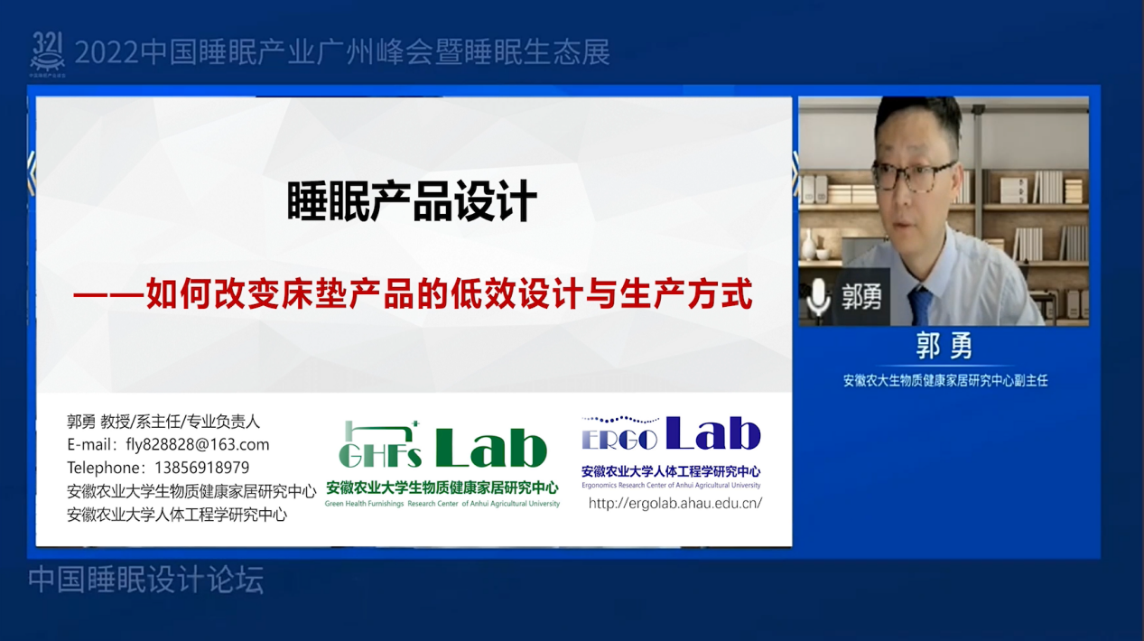 在19日上午的“中国睡眠设计论坛”上,yl6809永利检测中心教授郭勇作为特邀嘉宾做《如何改变床垫产品的低效设计与生产方式》专题演讲。