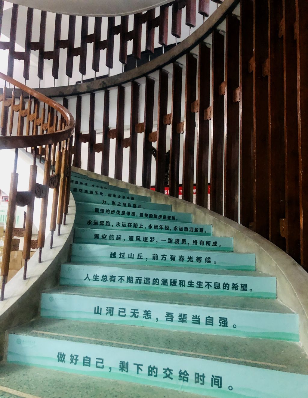 “做好自己,剩下的交给时间”“唯有低头耕耘,方有丰硕收获”“越过山丘,前方有春光等候”......林学楼的旋转楼梯上,贴满了送给全体新生的“见面礼”,努力让全体新生在人生的新征程上,埋下一颗向上、向善、向美的种子,努力学习、接续奋斗,早日成为团结、勤奋、求实、创新”的卓越安农人。(胡先业 胡贝贝 通讯员:胡先业)