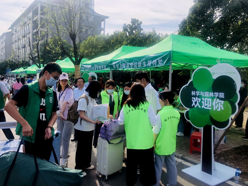 22级林学(中外合作)专业康洲轶说,下车前原本做好了“找不着北、甚至还会碰壁”的心理,但是学院的特色迎新和老师、学长学姐周到细致的服务,让他紧绷的神经很快放松了下来,“作为林学专业的学子,迎新现场硕大的‘迎新树’和‘签名树’,一下子就深深吸引了我,”康洲轶说,整个报到流程简洁高效,核验身份后一份带有专属姓名贴的材料包就解决了所有。“学院竟然还为所有新生特别定制了专属文件夹、签字笔及笔记本,简直不能再爱!”
