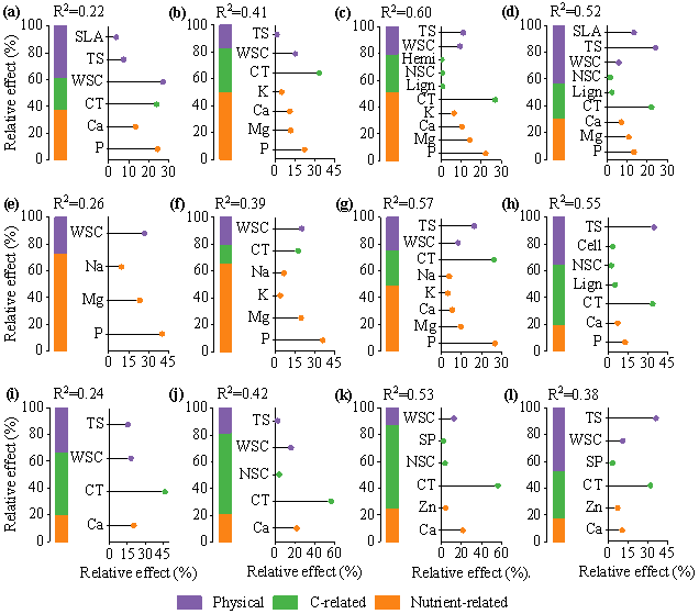 该论文以203个树种叶凋落物为研究对象,探究凋落物性状-分解联系(litter trait-decomposition linkage)的时间动态,发现凋落物性状对凋落物的后期分解具有更高的预测能力;凋落物不同类型性状(养分相关性状、C相关性状和物理性状)对凋落物分解影响的相对重要性随着凋落物分解的进行发生转变,并且受到植物功能型的强烈调节。本研究结果强调了在评估凋落物性状对凋落物分解的影响时考虑时间动态和植物功能型的重要性。