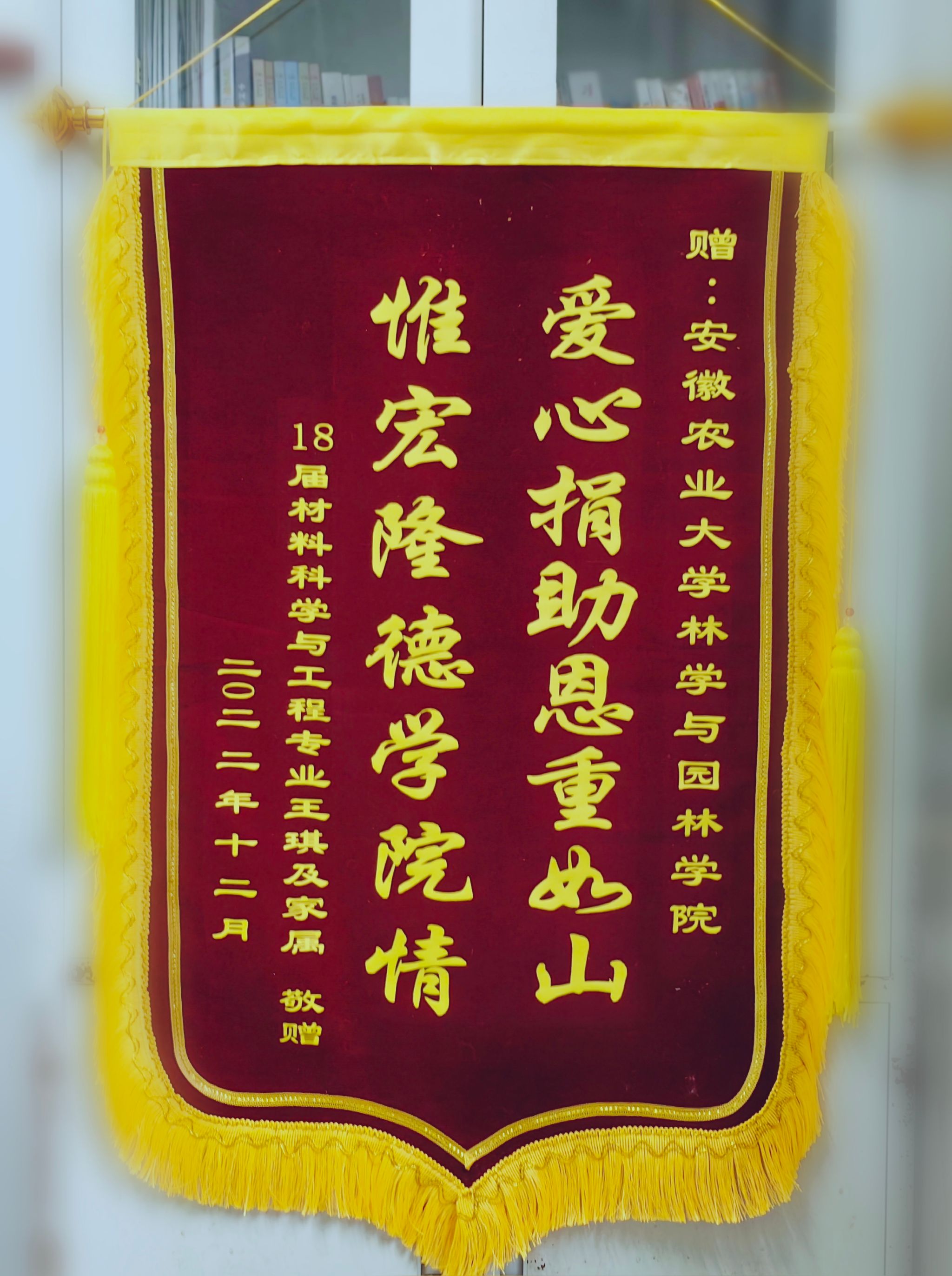 近日,yl6809永利检测中心收到2022届材料科学与工程专业王琪同学家长寄来的感谢信以及绣着“爱心捐助恩重如山,惟宏隆德学院情”的烫金锦旗,感谢其孩子在校生病、住院期间,学院师生给与的关心关爱和爱心募捐。