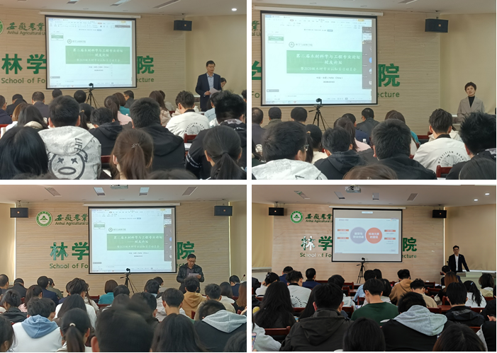 上午,百格斯特家居科技(江苏)有限公司总经理柴永家以从家具地墙行业现状和机遇与发展趋势两个方面展开报告,详细介绍了我国家具行业的市场现状,木地板与墙面板合二为一的机遇与态势,强调“质量里面有黄基金,高端路上不拥堵”的概念。六安东霖新材料有限公司工程师聂友鑫详细介绍了我国人造板行业的发展现状和人造板生产工艺程,激发了同学们对人造板生产的强烈兴趣。上海亚振家居股份有限公司渠道运营总监刘义围绕“高级定制”从探索定制之路、亚振产品研读、优秀案例分享三方面立体深度解读高级定制。