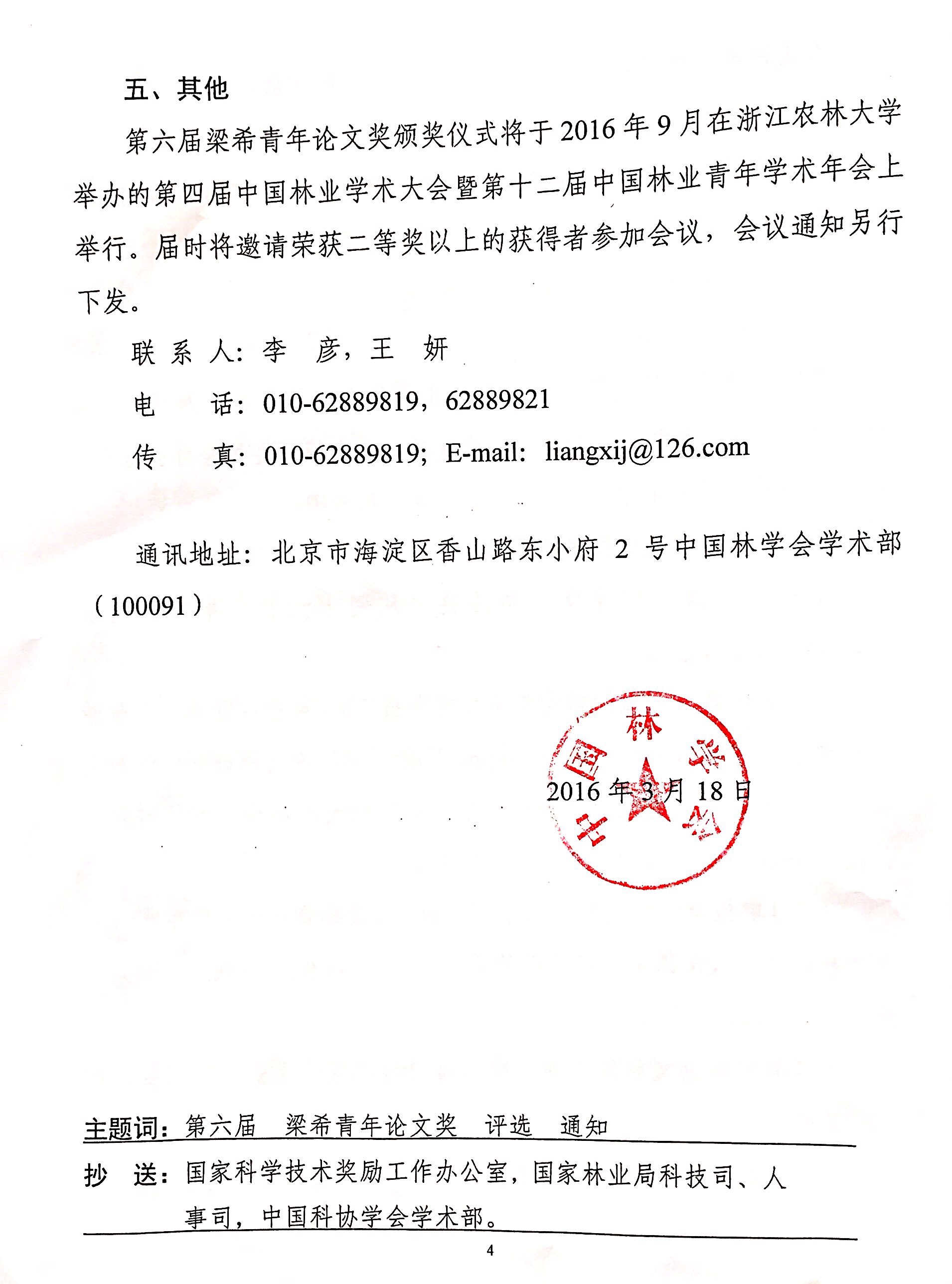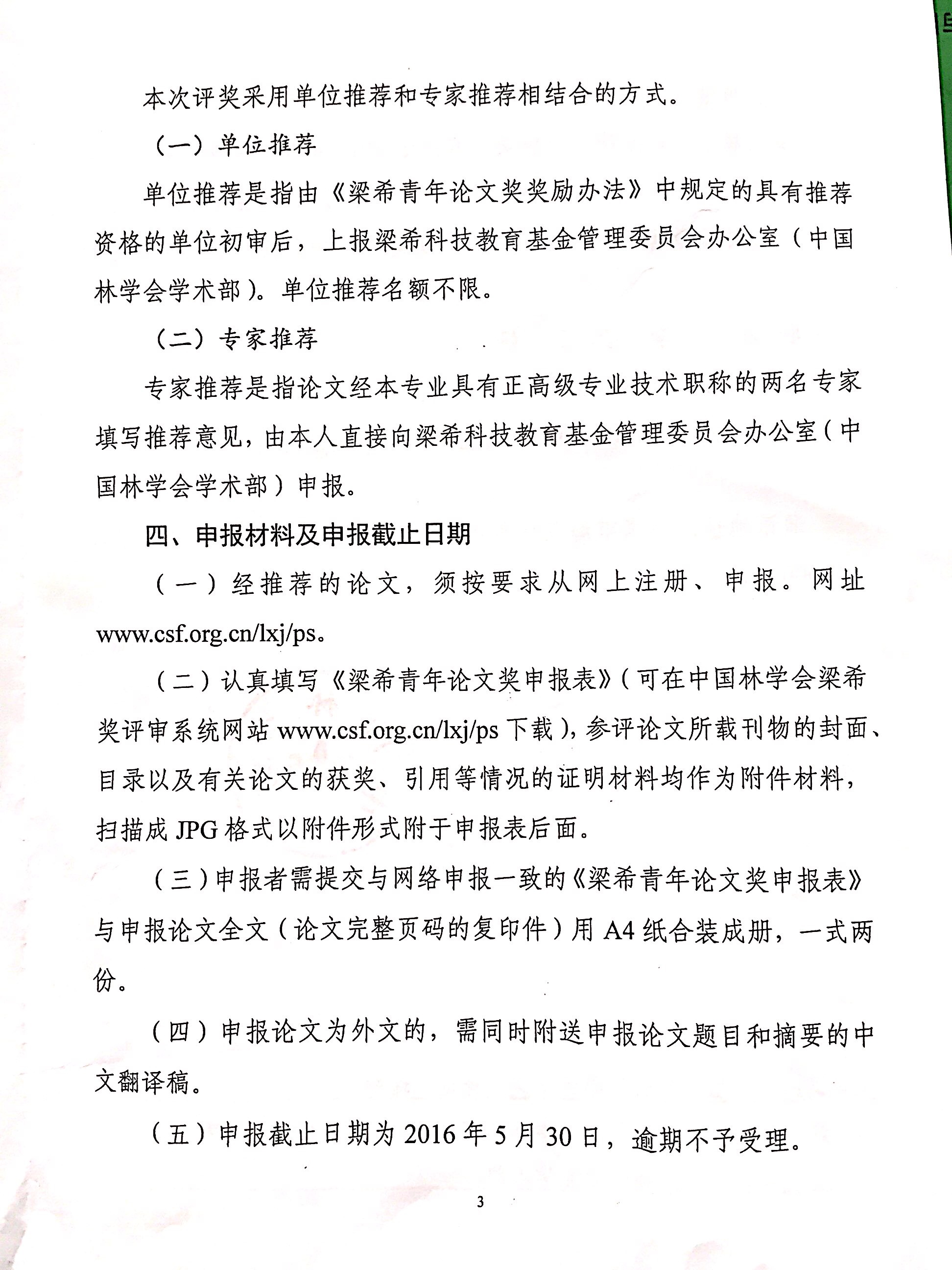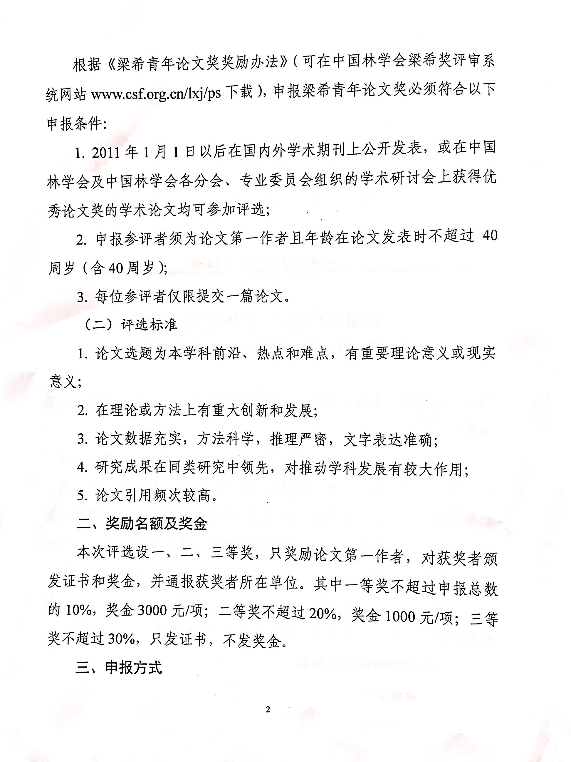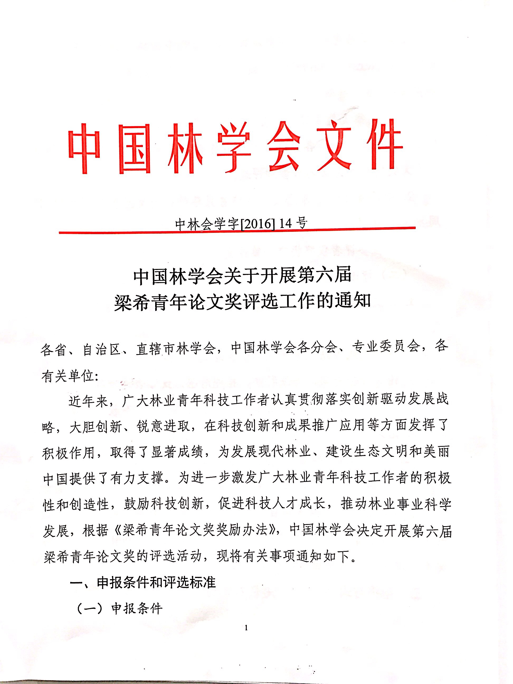 中国林学会关于开展第六届梁希青年论文奖评选工作的通知