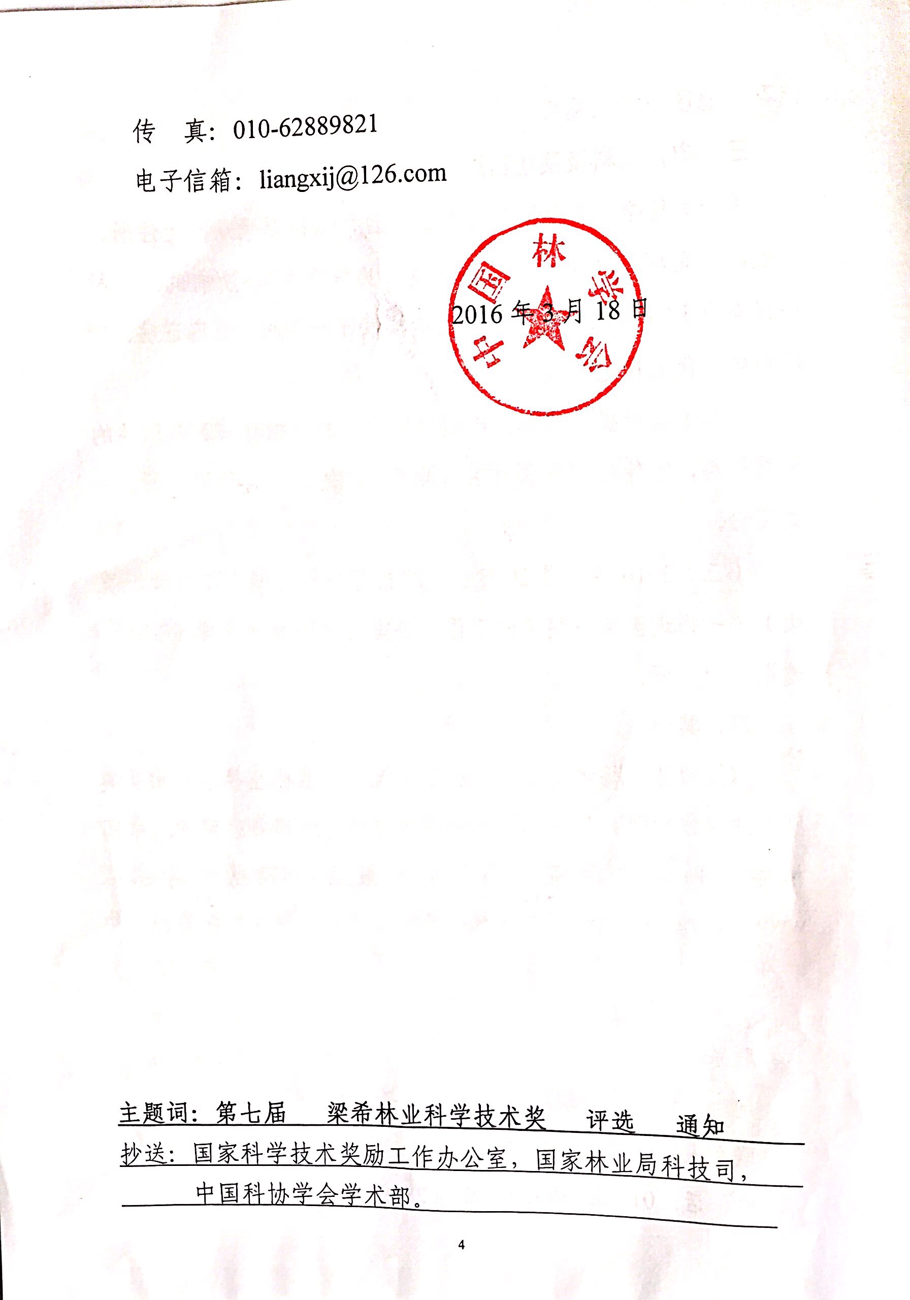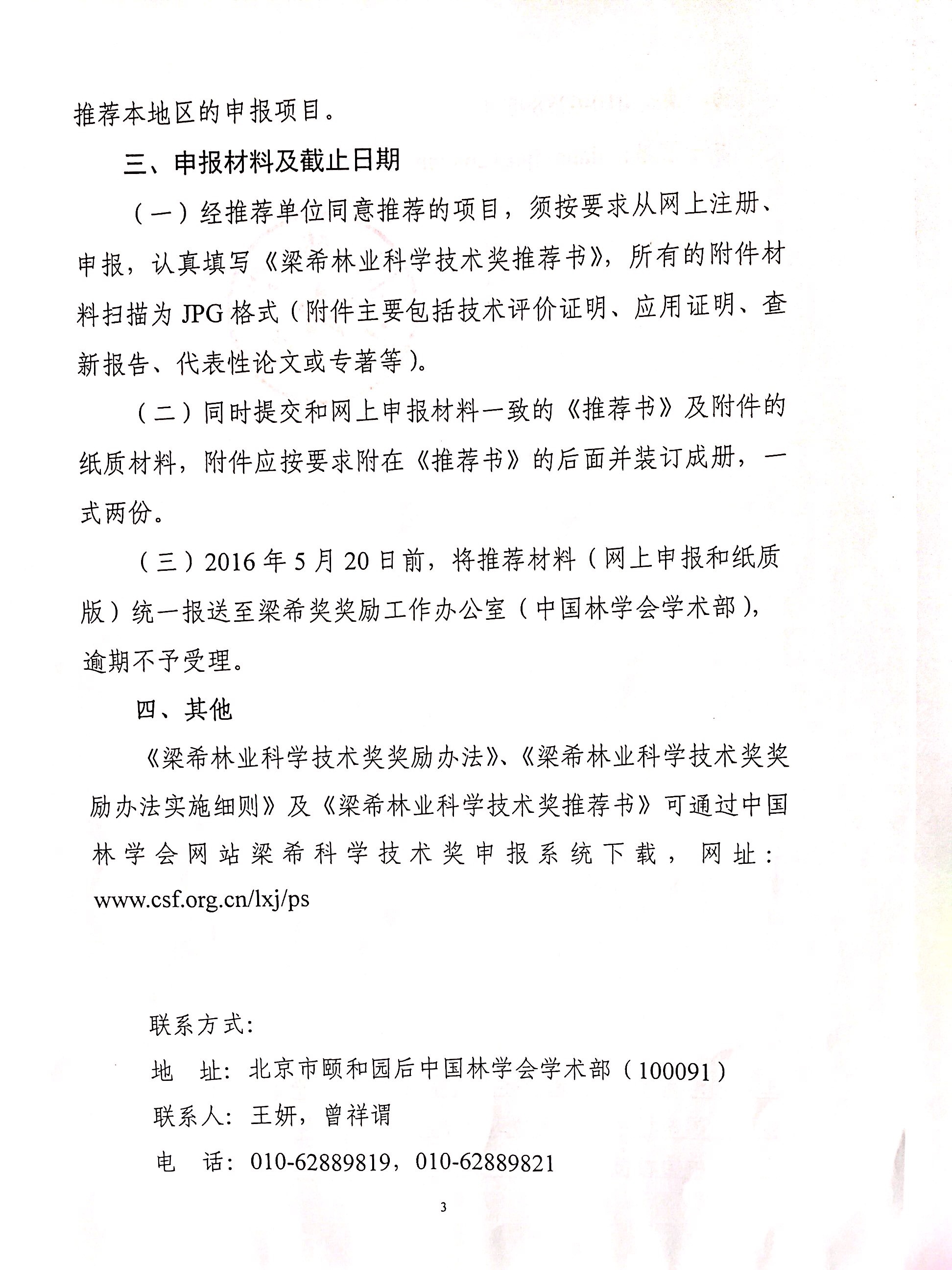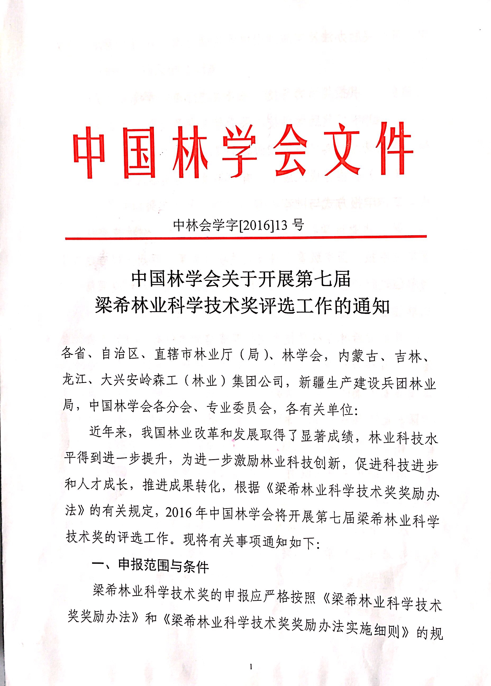 中国林学会关于开展第七届梁希林业科学技术奖评选工作的通知