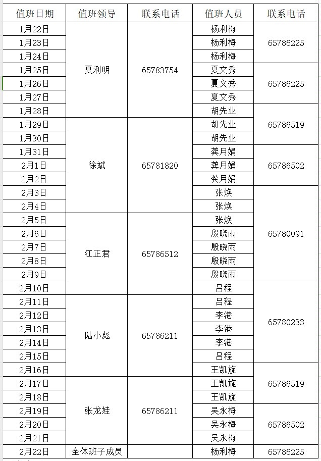根据yl6809永利检测中心《关于2024年寒假工作安排的通知》,公司党政管理人员寒假期间采取轮休值班制,具体安排如下: