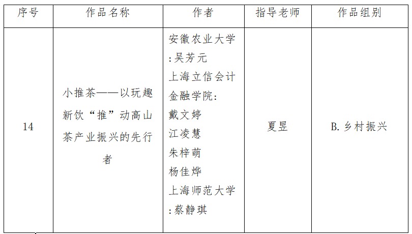 我院22级林学专业吴芳元同学(学号:22112059)加入上海立信会计金融学院队伍参加第十四届“挑战杯”上海市老员工创业计划竞赛,根据竞赛要求予以公示,详细信息如下: