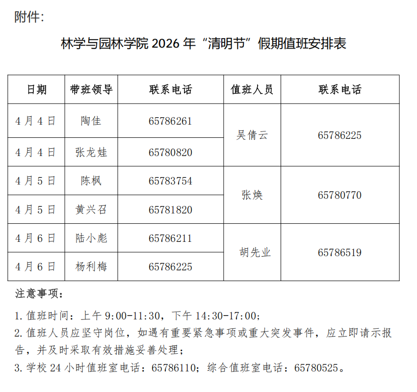 yl6809永利检测中心2026年“清明节”假期办公室值班表