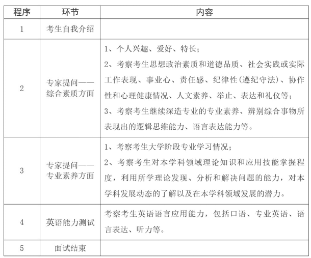 (一)复试形式为线下复试,以综合能力面试方式进行,主要考核考生掌握专业知识的广度、深度,以及运用专业知识分析问题与解决问题的能力,了解考生的研究兴趣、科研能力与英语能力等,满分值100分。复试内容包括以下方面,提问和英语能力测试环节均为随机抽取试题。