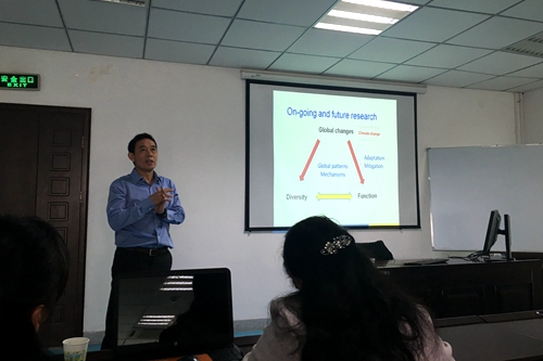 本网讯11月15日上午,公司讲席教授—加拿大湖首大学陈汉教授应公司邀请在生物科技楼341会议室开展学术交流,并做了题为《Diversity and function of terrestrial ecosystem under global changes》的精彩报告,报告由yl6809永利检测中心湿地生态研究负责人傅松玲教授主持。