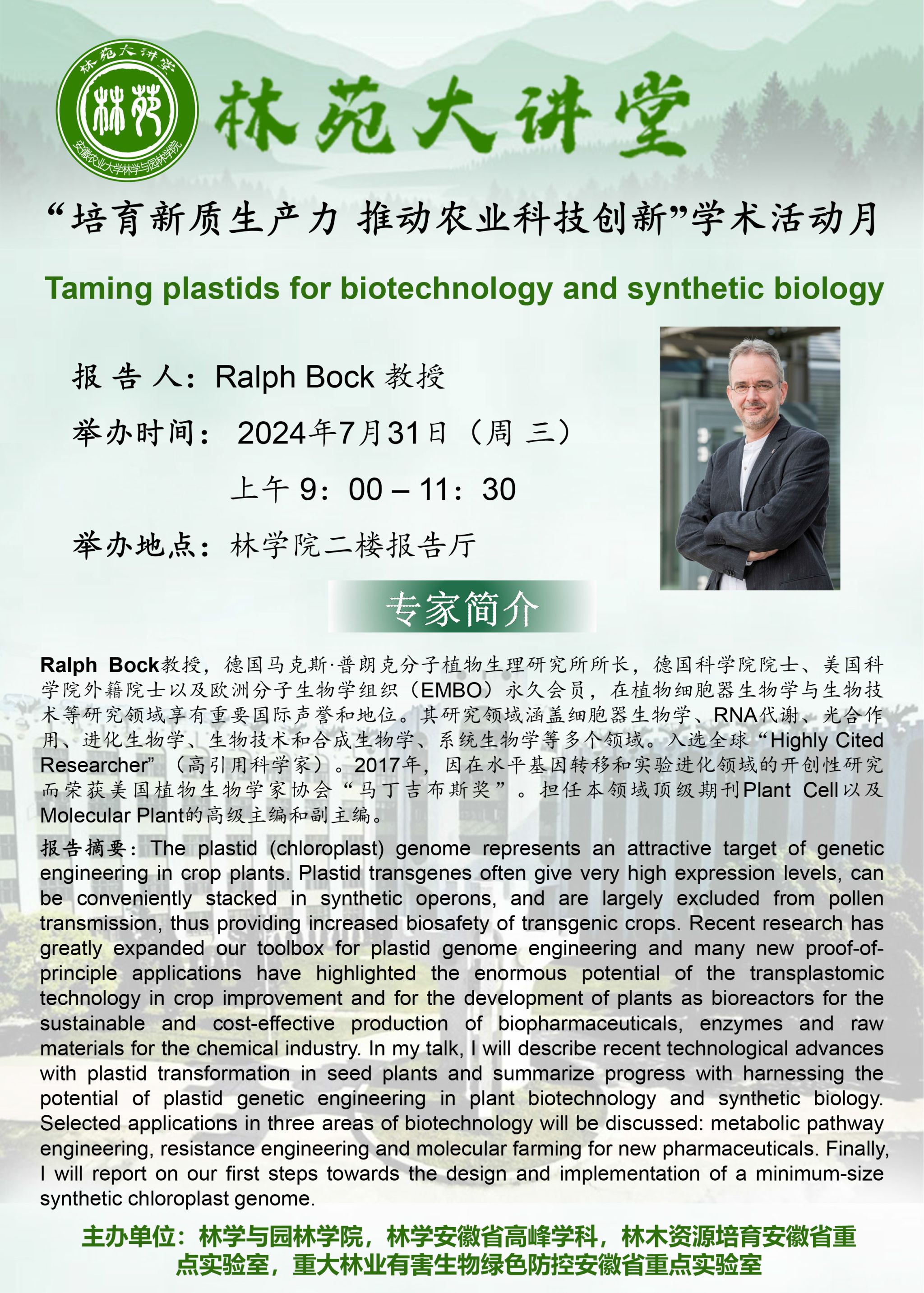 报告地点:林学楼二楼报告厅