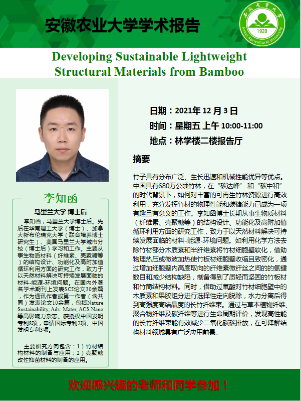 学术报告——Developing Sustainable Lightweight Structural Materials from Bamboo