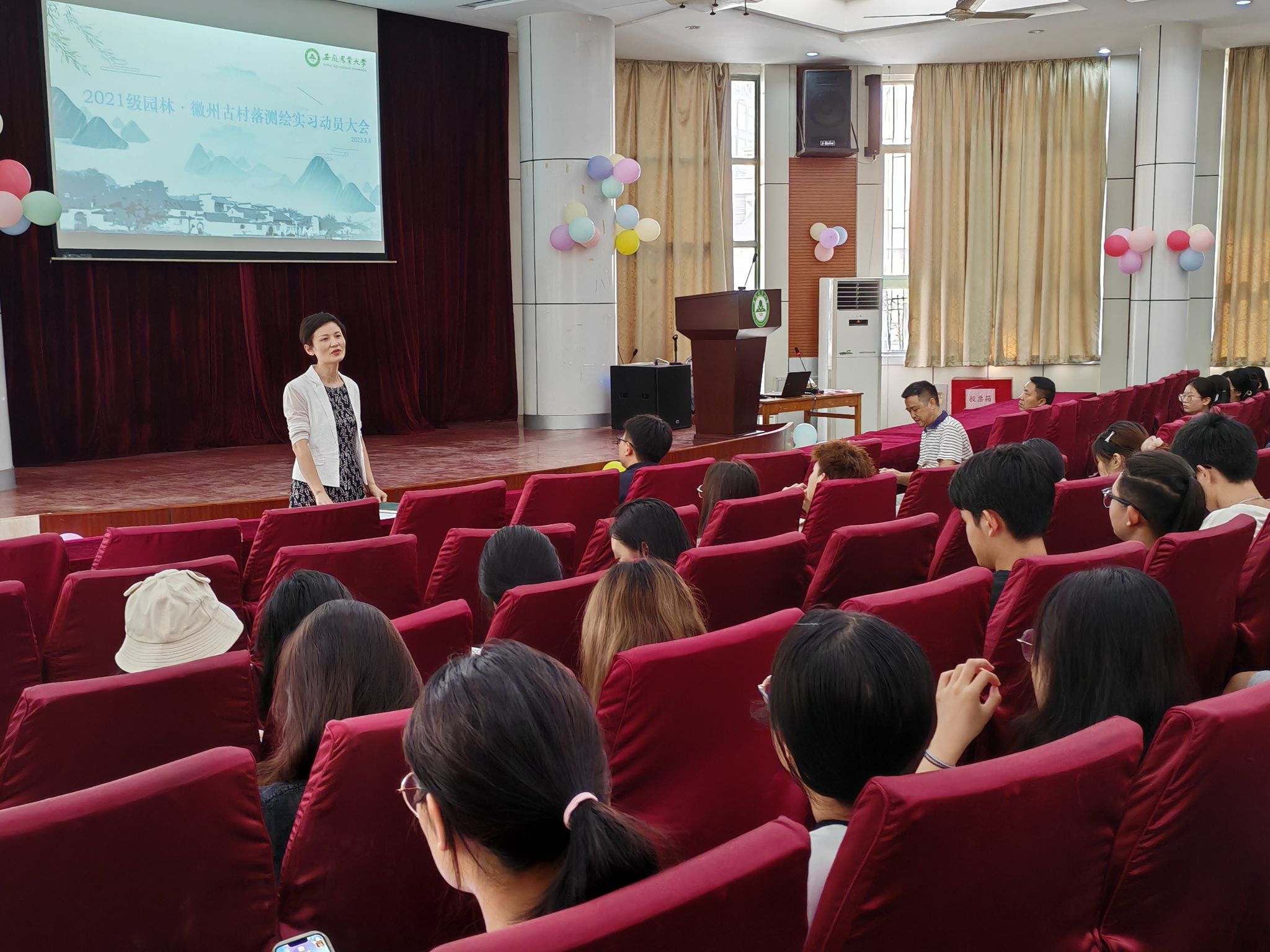 本网讯 9月8日下午,yl6809永利检测中心2021级园林专业在林学楼一楼报告厅召开徽州古村落测绘实习动员大会。公司党委副书记夏利明、副经理陆小彪、徽州古村落测绘课程老师及2021级园林专业员工参加会议,会议由21级园林专业辅导员主持。