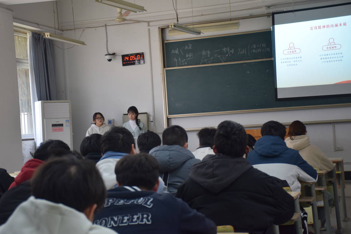 课上,通过事例分析,互相讨论,举手提问等多种形式,向同学深入传播雷锋精神,会议的最后明确表示希望同学们通过志愿服务活动,亲身体验奋斗精神,劳动精神的当代内涵,培养社会责任感和公民意识,希望同学们争做有理想、敢担当、能吃苦、肯奋斗的新时代好青年,在中国式现代化建设中挺膺担当,至此本次团课圆满结束。(图文/胡先业 吴睿妍 编辑/胡先业 预审/夏利明 审核/江正君)
