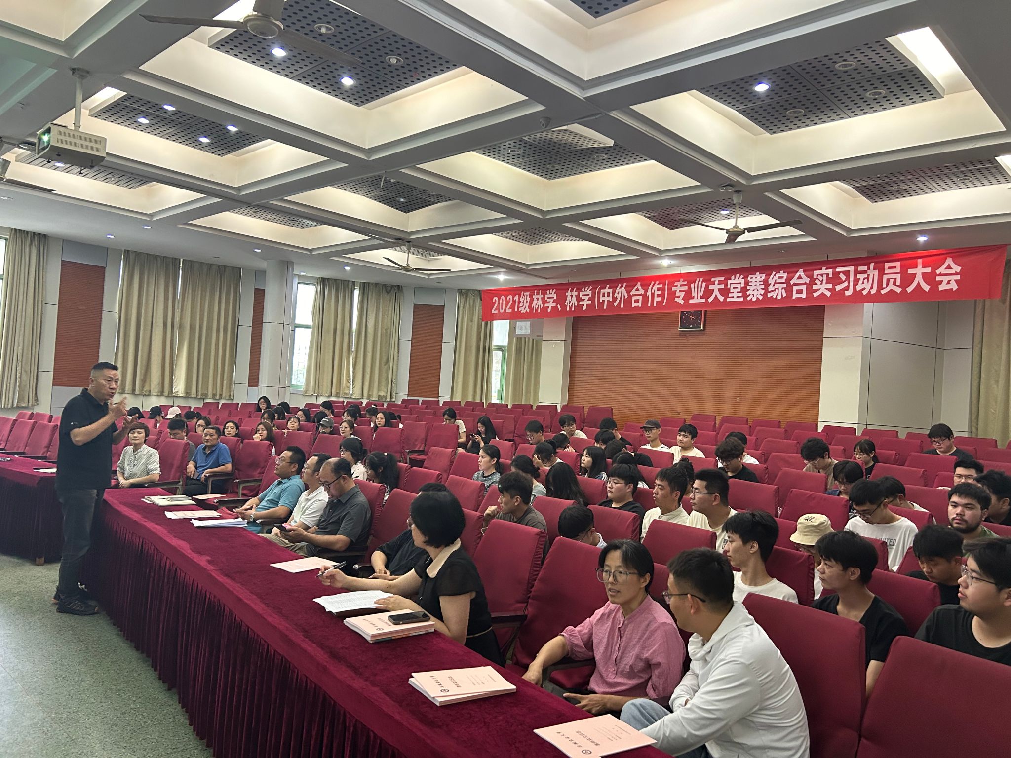 会上,夏利明指出,林学的课程实习渊源很久,林学专业本来也是一门实践性非常强的专业,并分享了学院前经理吴泽民的主题征文《林学专业实践教学的师道传承——忆黄山树木学实习点滴》,以及19林学专业的实习感悟,激励同学充分利用好本次实习的机会,不断强化理论与实践相结合。