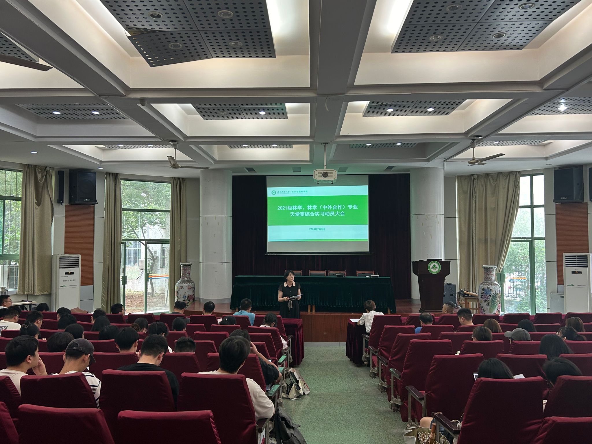 林学系陈名君老师和专业辅导员岳兴程就本次实习的地点、实习内容、实习期间的规章制度以及安全问题作了强调。在实习过程中务必遵守相关规章制度,按时按量完成实习报告,各团队要积极协助配合,听从相关指导老师的安排和要求。