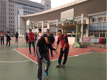 活动共有团队跳绳、身体猜字谜、分享交流三个环节。班长向大家介绍活动项目规则,鼓励同学们积极参与,拿出自己的劲头,展现自己,主持人和体育委员将同学进行分组,并分发活动所需用品及相关器材,同学们都积极参与到活动中,各显本领;在分享环节,大家畅快交谈,互相帮忙,相互合作,一同解决活动中遇到的问题;