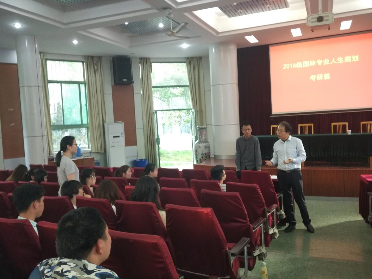 江书记以“园林专业考研”为主线,分享了自己当年作为一名园林专业员工在安农的求学经历,并就当前园林专业在国家政策以及社会需求下的发展趋势,给同学们分析了未来园林专业的考研方向和就业前景。江书记演讲完毕后,同学们踊跃发言,江书记一一解答了同学们关于专业方向选择、考研、考职等方面的疑惑,增强了同学们的专业自信心,坚定了同学们在园林专业上进一步完善自我、成长成才的决心。