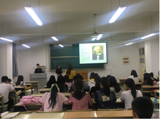 随后,陈凡同学就马克思主义经典原著和马克思的生平,向同学解释了马克思主义的理论来源和内涵,同时也阐明无产阶级思想的科学体系的内容。
