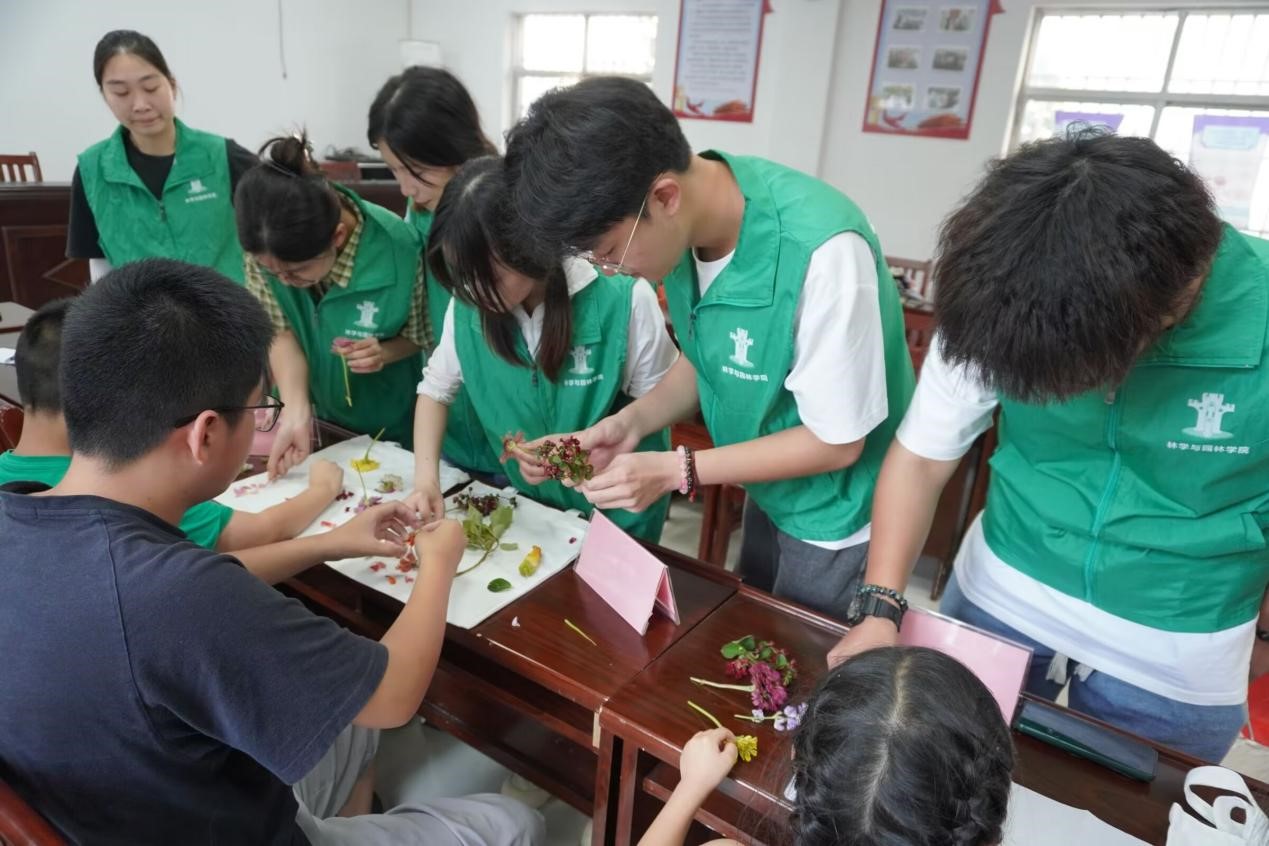 为推动社会文明的进步,关怀乡村孩童的健康成长。2024年7月23日下午,实践团成员借用培文村党群服务中心会议室开展夏日自然花草拓印活动。