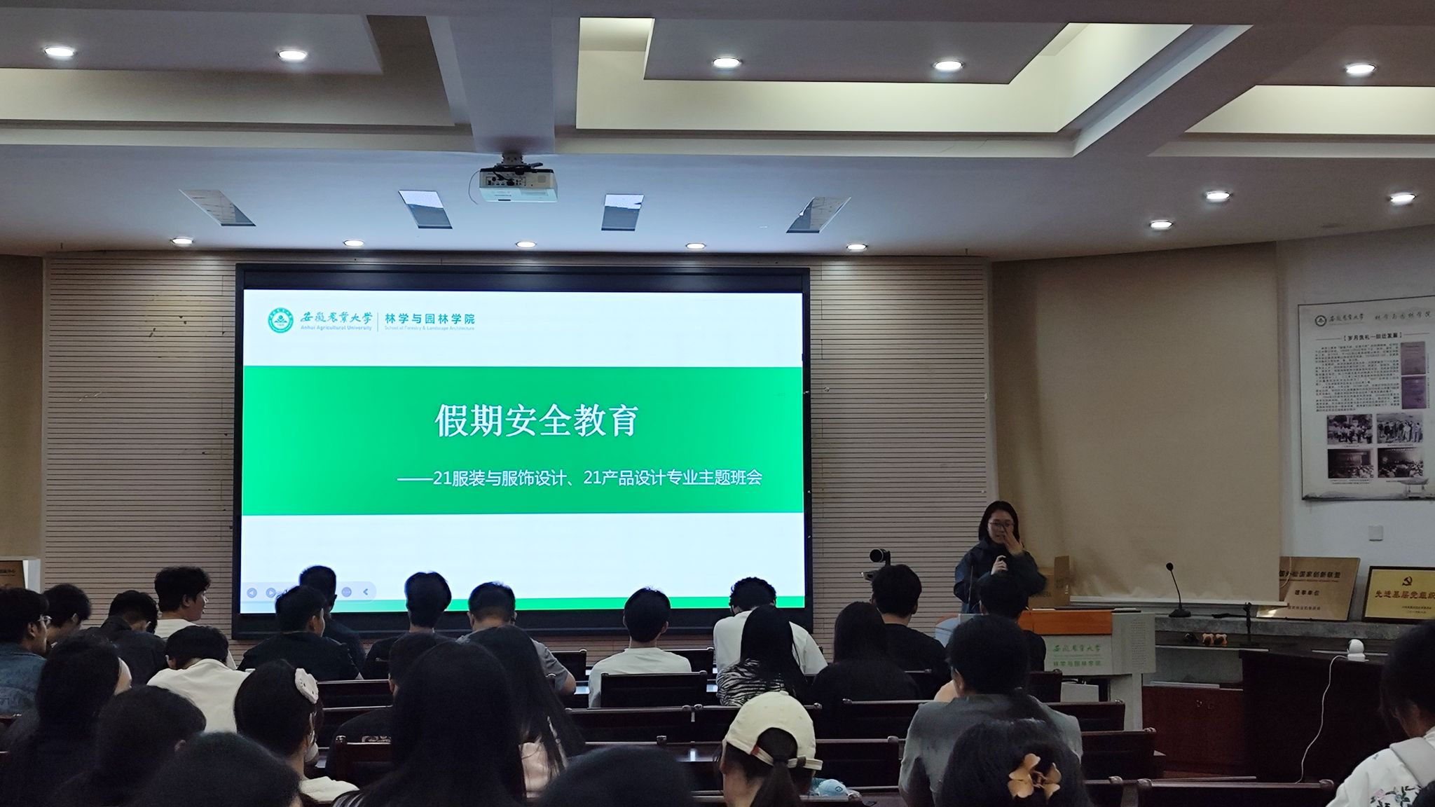 9月28日,21产品、21服装专业在林学楼二楼报告厅开展了假期安全教育主题班会。班会由辅导员张焕主持,全体同学参加。