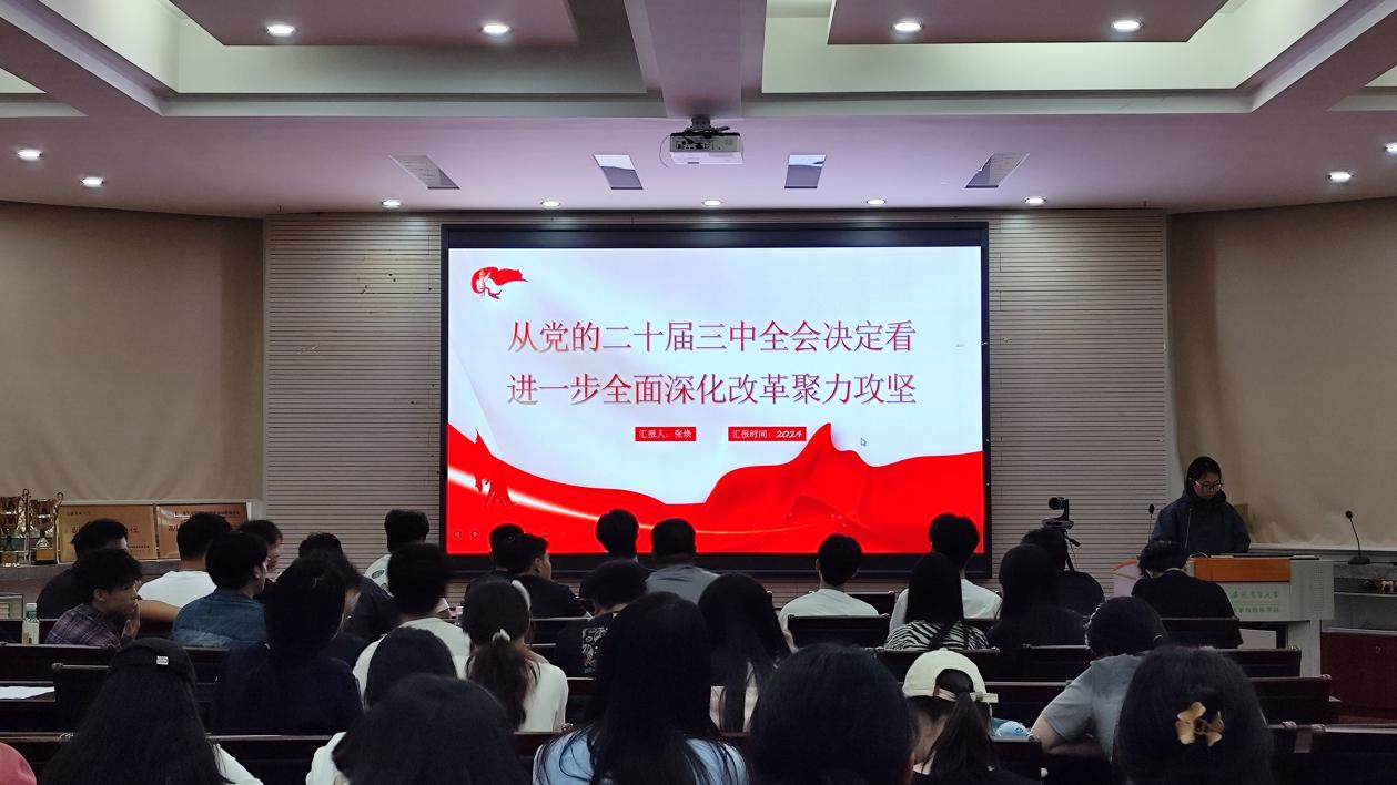 12月5日下午,23林学硕士3班在林学楼二楼报告厅开展主题团日活动,深入学习党的二十届三中全会精神。会议由辅导员主持,全体同学参与。