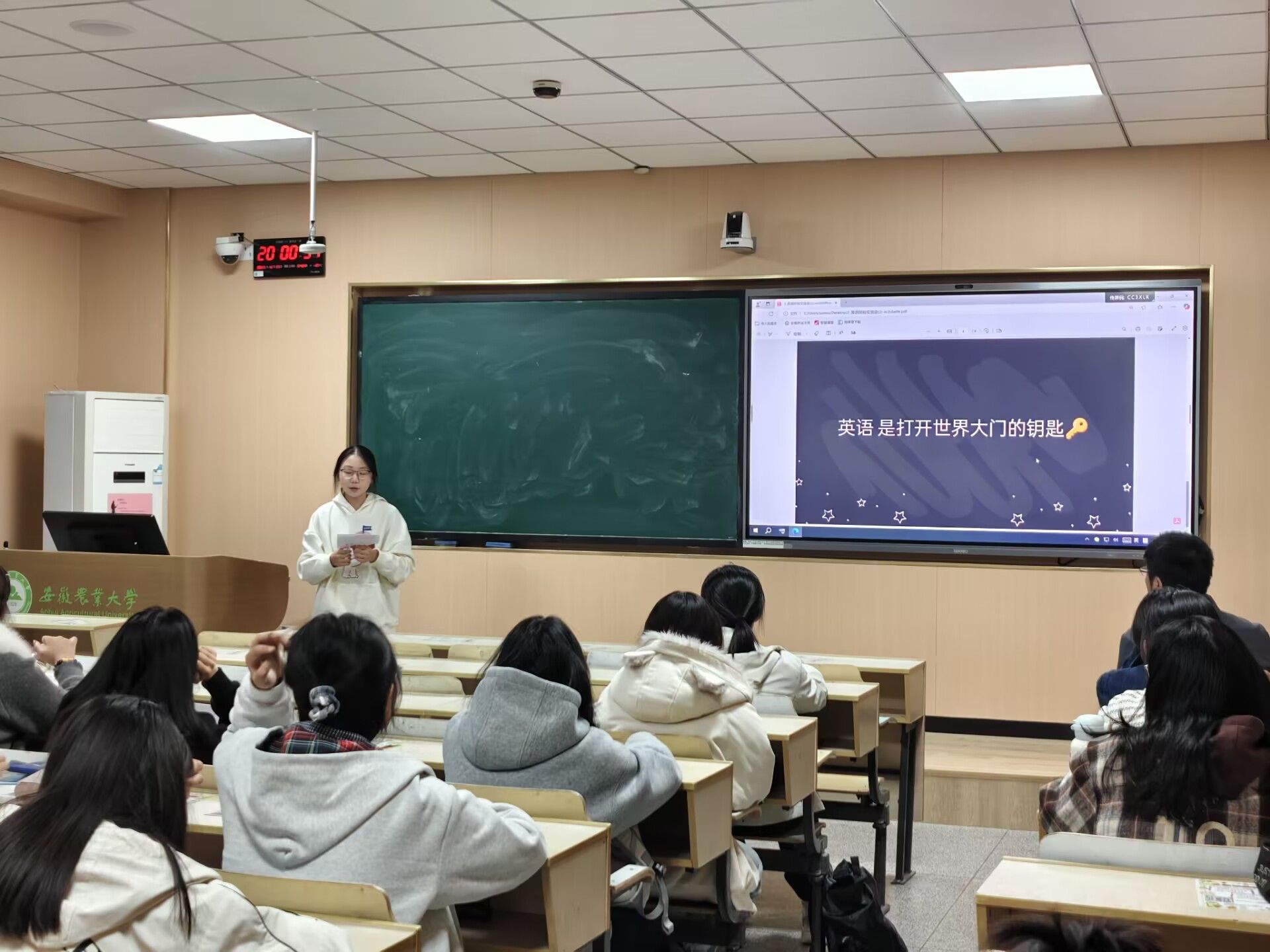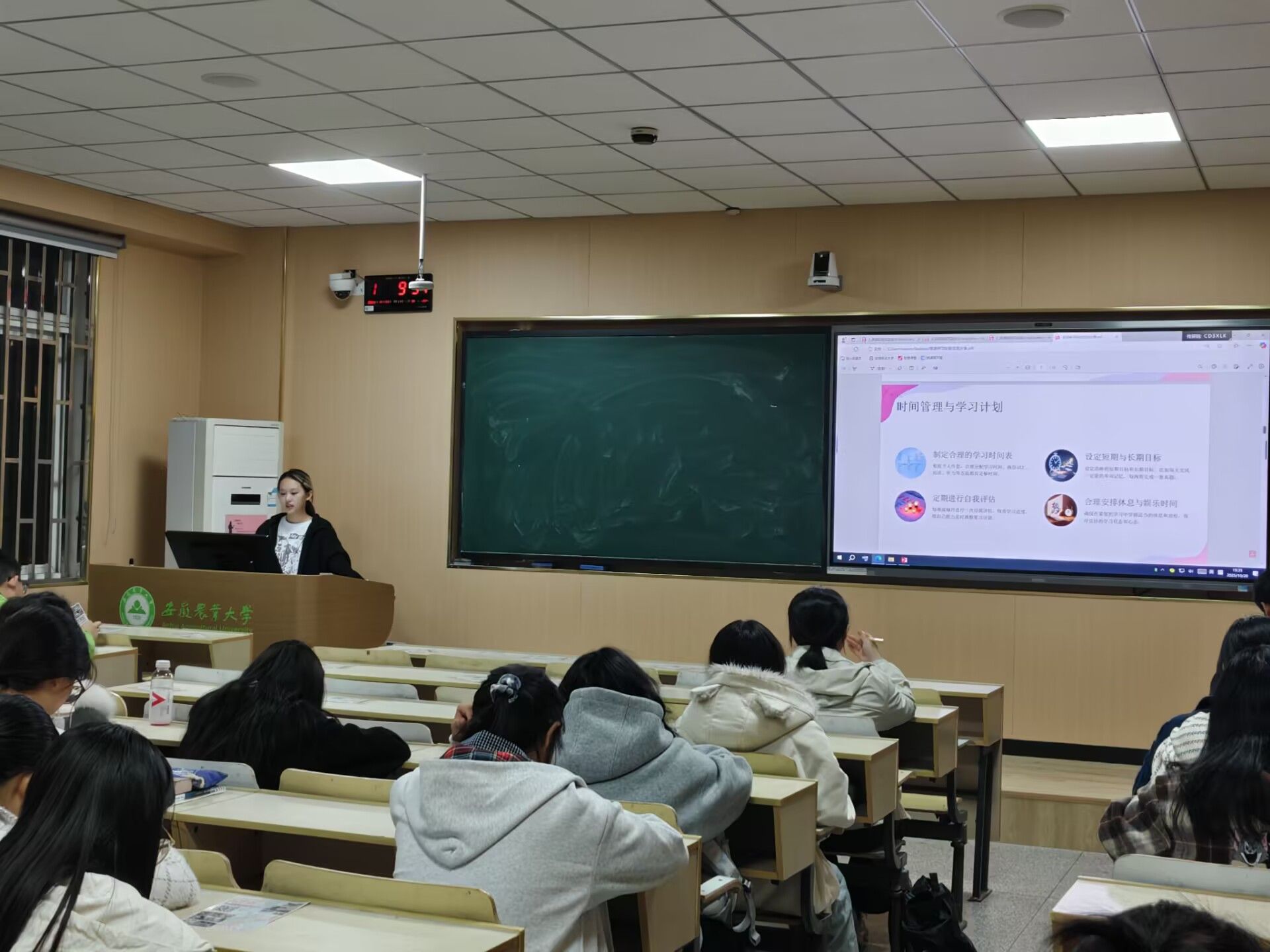本网讯 为加强班级学风建设,营造浓厚学习氛围,10月20日晚,2025级园林专业在勤学楼512教室举办“学霸小讲堂”第1期——英语学习经验分享会。活动由班级2位英语成绩优异同学担任分享人,辅导员陈枫老师和25级园林专业全体员工参加活动,活动由学习委员宋婧主持。
