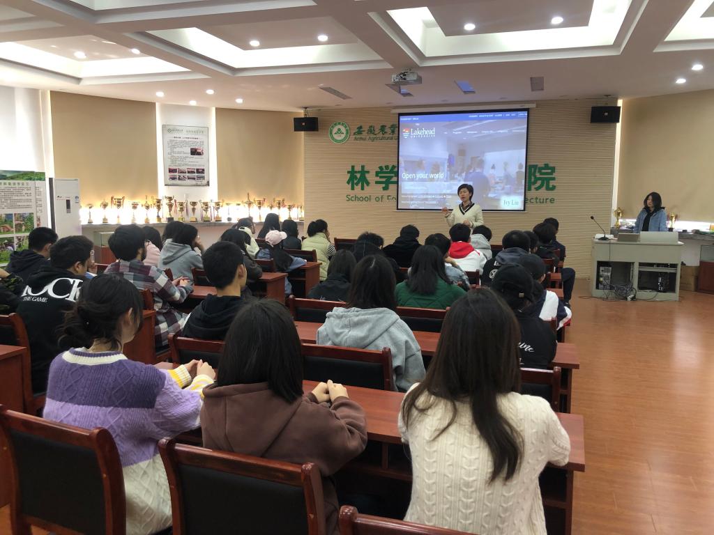 接着,刘同学结合自己在国外求学的亲身经历与各位同学进行了交流,并将自己留学时期的住宿、语言、交通、学校生活等方面遇到的一些困难和解决方法与个同学分享,以真实的事例让同学们解除一些对于出国交流学习的顾虑。最后,她给广大学弟学妹提出几点建议,希望学弟学妹们要不断用知识去武装大脑,及时消化所学知识;要努力去提高自己的英文水平,坚持学好英语。