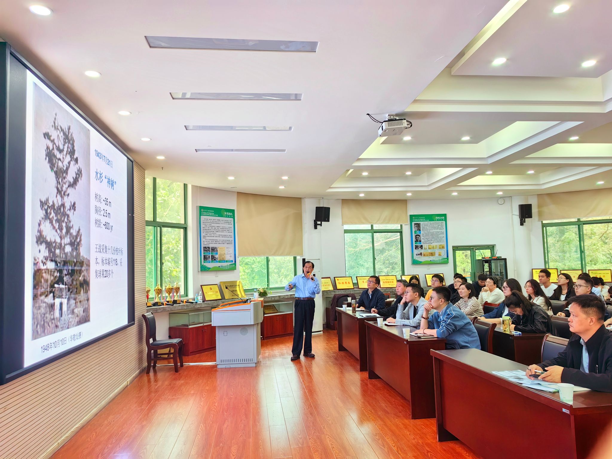 会上,钱宏以“活化石水杉发现的真相”为主题,进行了深入探讨,全面回顾了这一被誉为“活化石”的珍稀植物的发现历程。他指出,水杉曾一度被认为已经灭绝,仅在化石记录中留下痕迹。然而,在20世纪40年代,我国科学家在湖北利川市谋道溪意外发现了存活的水杉植株,这一发现震惊了全球植物学界。接着,钱宏以时间为引线,围绕水杉是怎么发现、水杉是谁发现的两个主要问题,详细介绍水杉的发现历程。钱宏以水杉发现历程勉励在场师生,要树立治学严谨、实事求是的科学态度。钱宏以其深厚的学术功底和生动的讲述方式,让大家对水杉这一“活化石”有了更加全面和深入的了解。