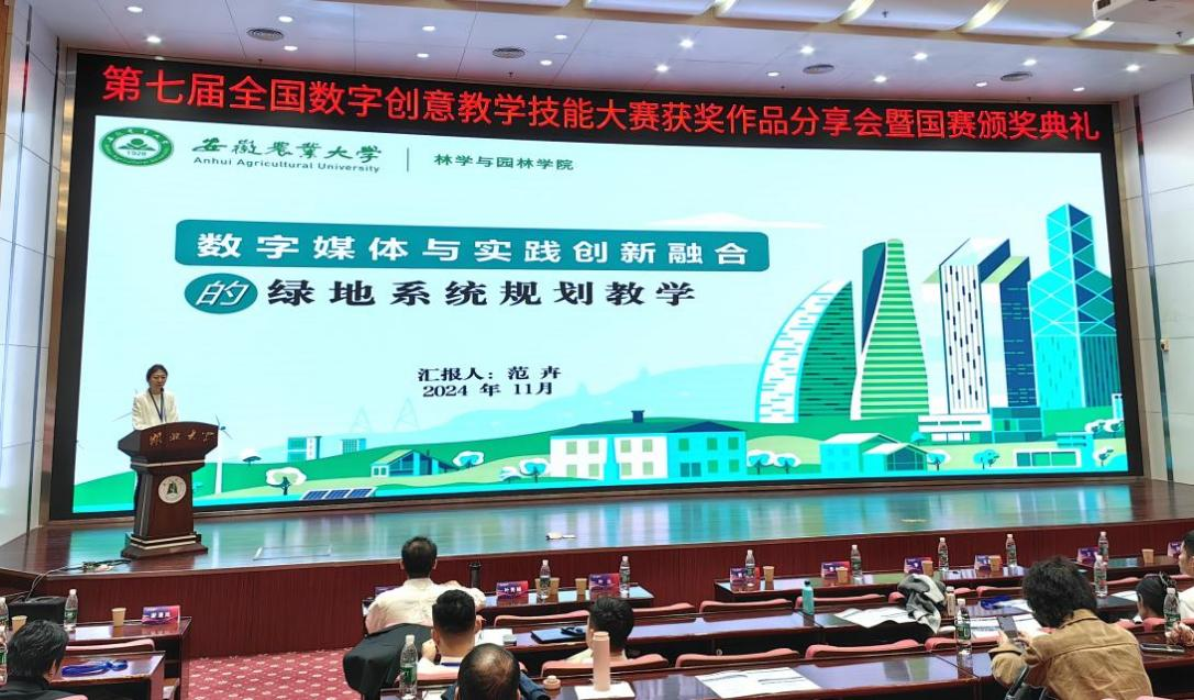 园林系孟艳琼老师提交的作品《园林花卉学-花镜种植设计》、范卉老师提交的作品《数字媒体与实践创新融合的绿地系统规划教学》,凭借独特的创意和卓越的教学效果,在众多参赛作品中脱颖而出,双双荣获国家级一等奖。两位老师在颁奖典礼上分享了获奖作品,介绍了在教学过程中如何将数字创意与专业知识相结合,以及如何通过创新的教学方法激发员工的学习兴趣和创造力,展现了yl6809永利检测中心yl6809永利检测中心的教学能力与教学特色。此外,园林系李莹莹老师的作品《景观生态学》获国家级三等奖,李若男老师的作品《园林道路工程设计》获省级一等奖。