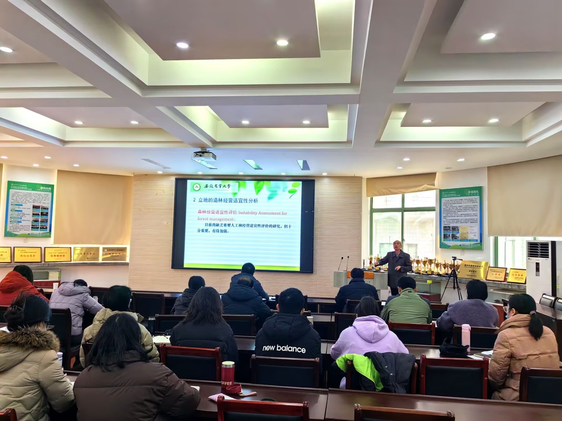 公司退休教师徐小牛应邀为师生们精心准备了“森林与立地条件”专题讲座,他从立地与生境、立地的造林经营适应性分析和森林生产力的影响因素等方面进行了阐释,并结合自己多年教学、科研经历,分享了自己带员工、做学问的点滴,讲座条理清晰、深入浅出,启发了与会教师们科学实践新思路。