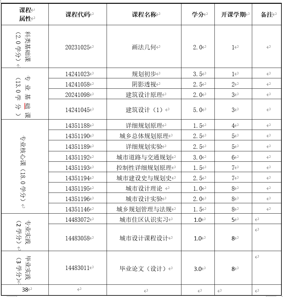 (七) 最低学分要求:最低修读38学分,其中课内教学不低于33学分,实践教学不低于5 学分。