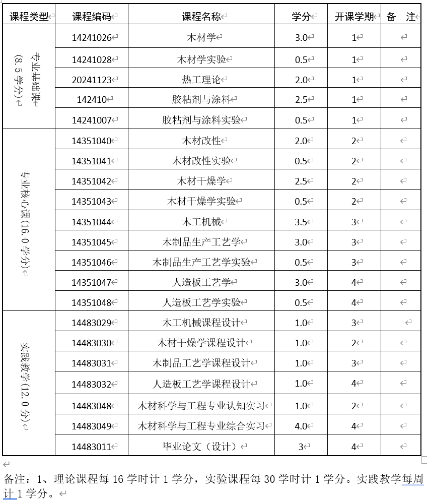 (五)主要课程:木材学,胶粘剂与涂料,木材干燥学,木制品生产工艺学,人造板工艺学,木工机械等。