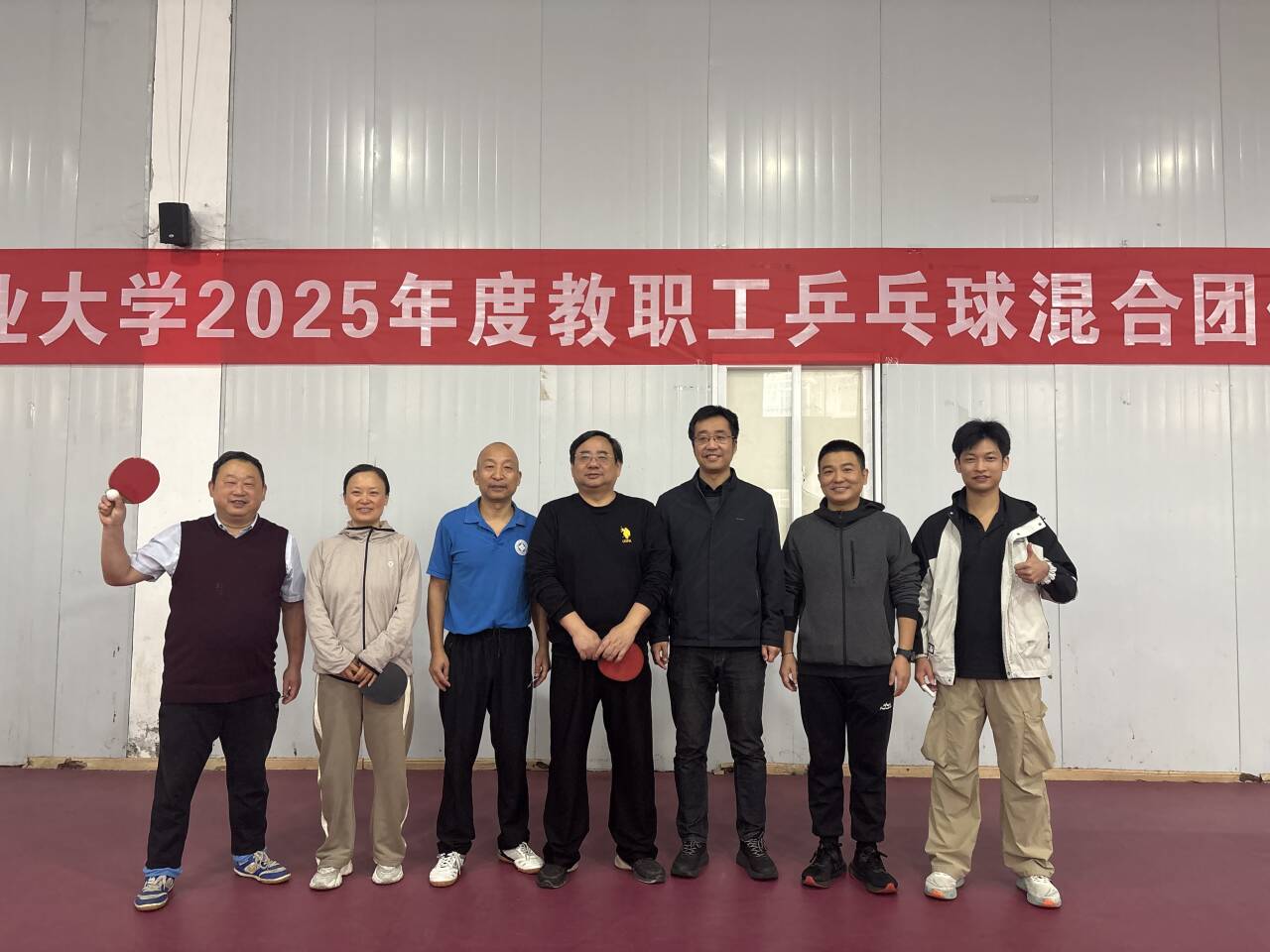 本次混合团体赛设有混双、单打、双打等多个对决环节,考验着选手的综合实力与团队战术配合。赛场上,学院参赛教师精神抖擞、斗志昂扬,直拍横打、精准削球、凌厉扣杀等技巧轮番上演,银球在球台间飞速跃动,每一次精彩回球都引发现场阵阵喝彩。面对强劲对手,队员们沉着冷静、灵活调整战术,发球时巧设陷阱,接球时严密防守,进攻时果断迅猛;双打项目中,队友间眼神交汇便心领神会,默契的跑位、精准的传球的衔接,将团队协作的力量展现得淋漓尽致。从小组循环赛的稳扎稳打,到淘汰赛的过关斩将,教师们用汗水诠释着“拼搏不止、永不言弃”的体育精神,一路奋勇向前闯入三甲。