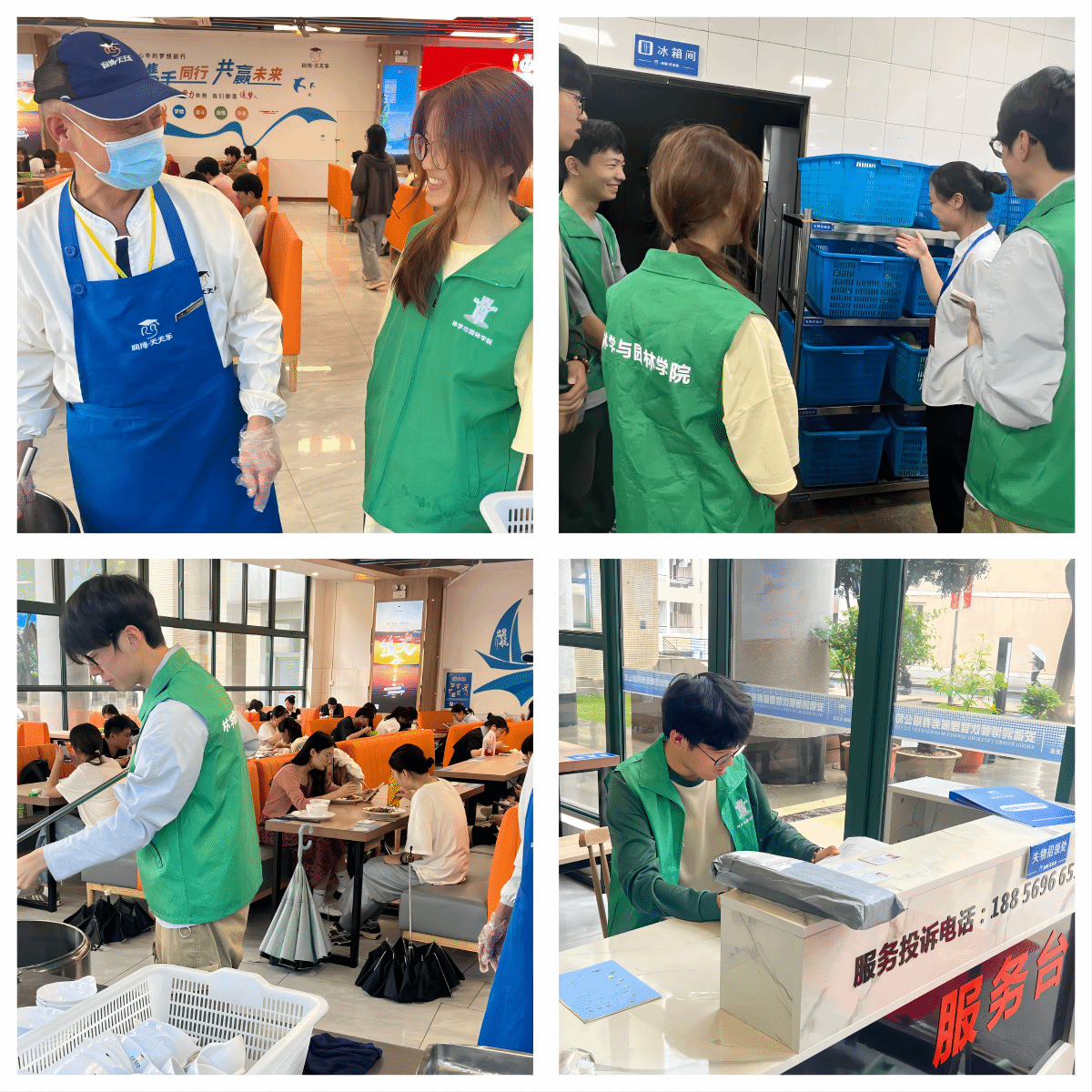 组织同学亲身参与食堂验菜、宿舍楼管、绿化养护等后勤保障岗位的劳动过程,充分发挥员工干部吃苦在前的示范引领作用。在与食堂工作人员的交流中,同学们了解了他们的具体工作,惊异于他们日常工作的琐碎与复杂,更加理解了他们工作的辛苦。“一粥一饭当思来之不易”,通过此次食堂劳动体验活动,不仅增强了同学们的食品安全意识,弘扬了勤俭节约的美德,更让同学们深刻地体会到了食堂工作的辛苦和责任,对于形成“尊重劳动,尊重粮食”的勤俭节约的优良作风具有重要作用。