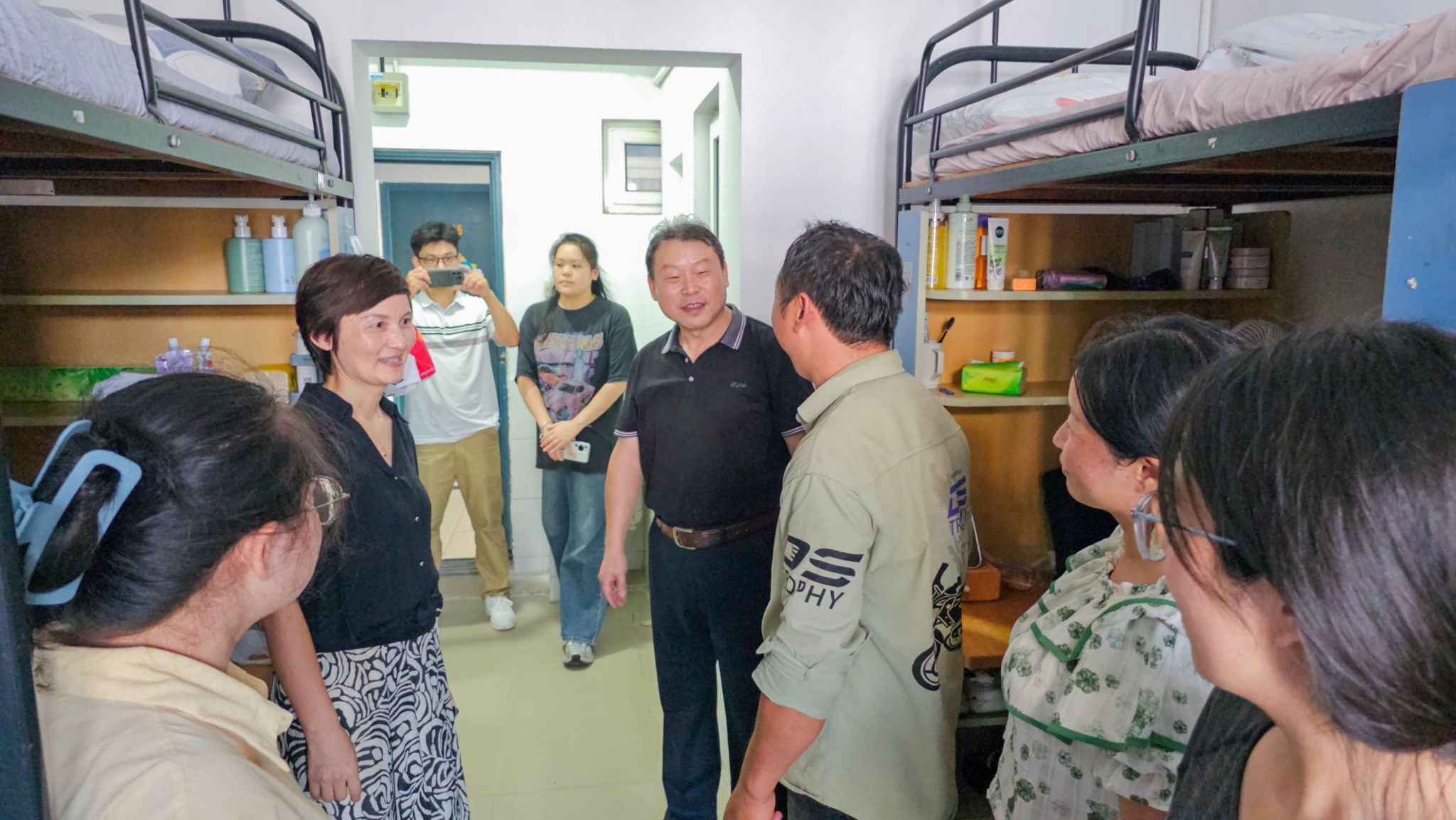 报到当天傍晚,学院领导班子成员与系部主任书记、辅导员班主任一起走访新生宿舍,关心员工们的生活和适应情况,为他们提供指导和建议,鼓励他们尽快适应老员工活,开启人生新征程。