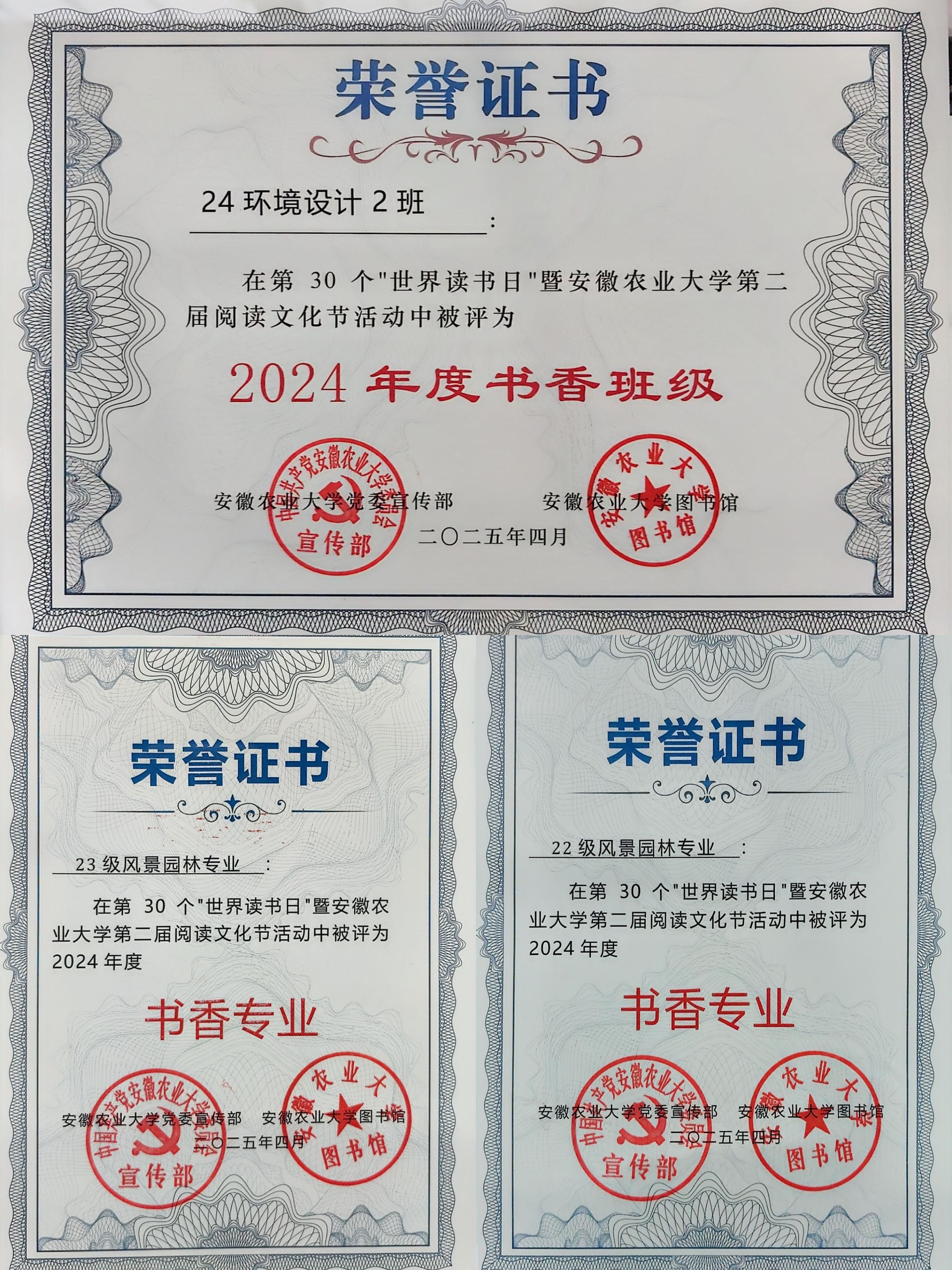 本网讯 为倡导全民阅读、营造书香校园,在第30个世界读书日到来之际,公司举办了yl6809永利检测中心第二届阅读文化节活动。活动中,yl6809永利检测中心24级环境设计2班获评“书香班级”称号,22级风景园林专业、23级风景园林专业获评“书香专业”称号。