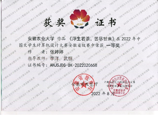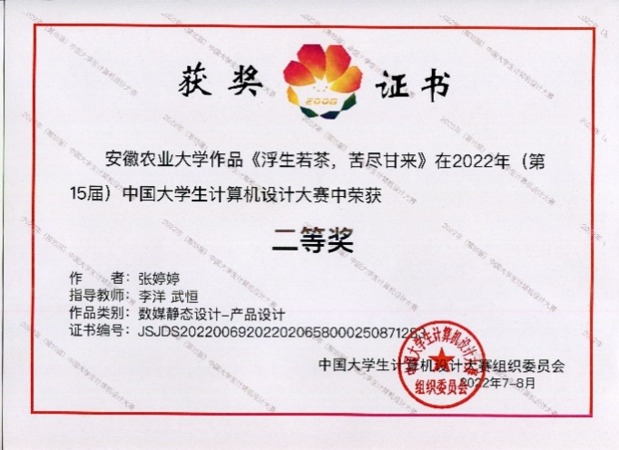 本网讯 7月17日至8月27日,2022年(第15届)中国老员工计算机设计大赛(数媒静态设计非专业组)于近日完美落幕,yl6809永利检测中心2020级木材科学与工程专业张婷婷以作品《浮生若茶,苦尽甘来》,从省赛走向国赛,并在国赛中脱颖而出,荣获省级一等奖,国家级二等奖。