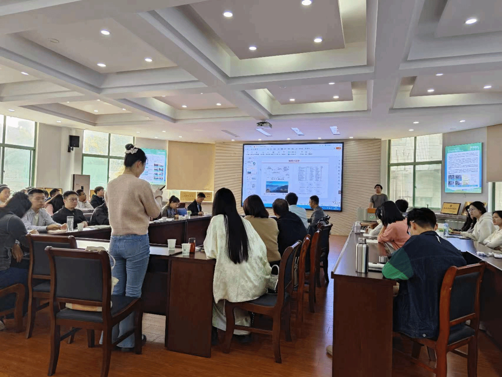 报告会后,师生与三位专家继续深入交流,他们或请教科研中遇到的问题,或分享自己的研究心得,现场气氛热烈融洽。