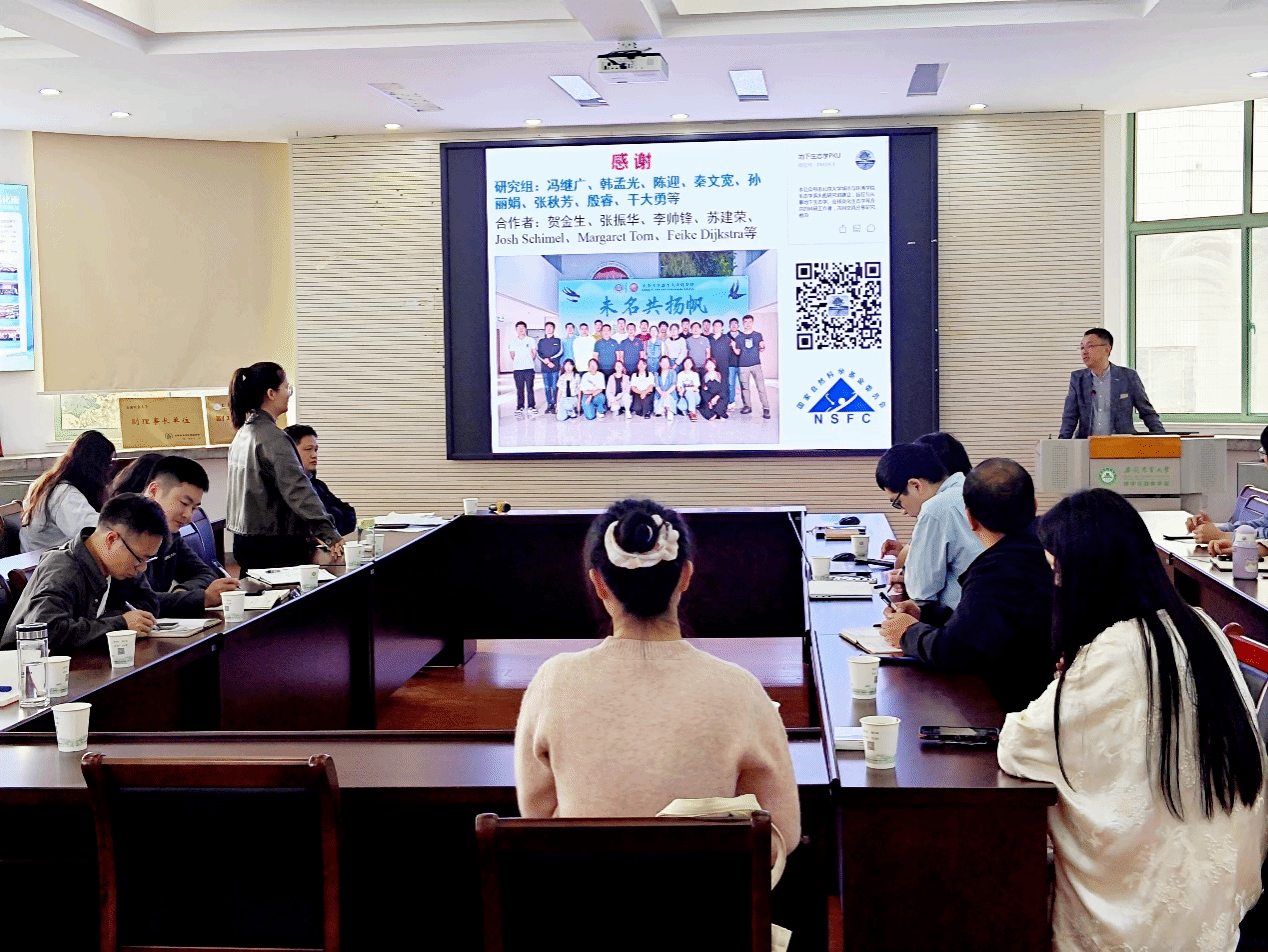 冯继广老师以“氮磷富集和植物输入对土壤有机碳动态的影响”为题,介绍了氮磷富集对激发效应的影响、磷富集对土壤碳动态的影响及植物输入对土壤有机碳的影响。